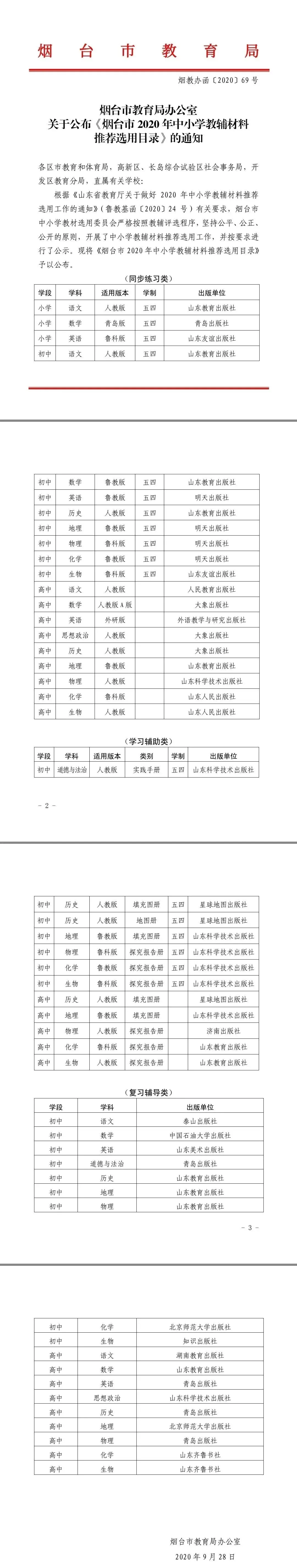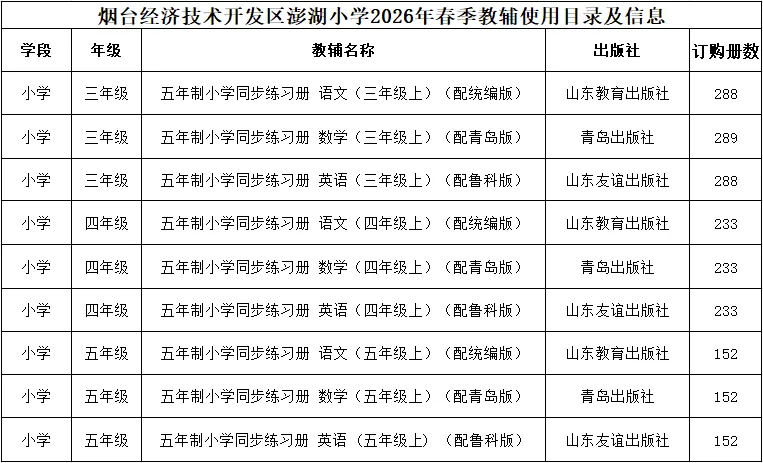 >烟台经济技术开发区澎湖小学2026年教辅选用、使用目录