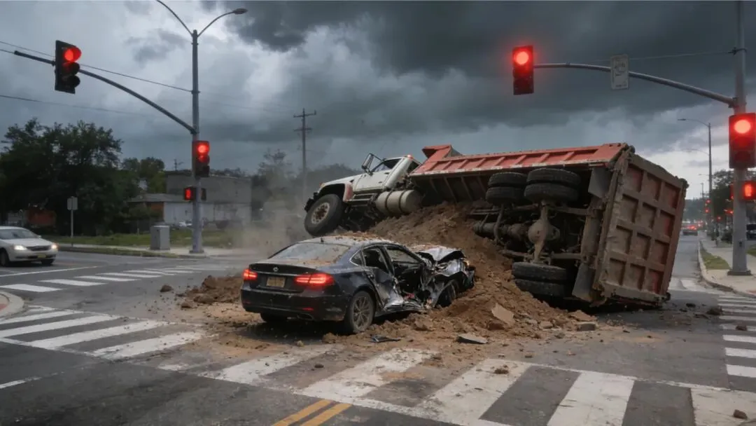 2025年11月7日15时41分,山东烟台芝罘区红旗西路与电厂东路交叉口,本是普通的下班高峰,一声巨响却击碎了所有平静。一辆渣土车右转弯时突然侧翻,近90吨的车身与货物轰然砸向对向车道,将一辆等待红灯的轿车瞬间掩埋,车顶被碾平如废铁。