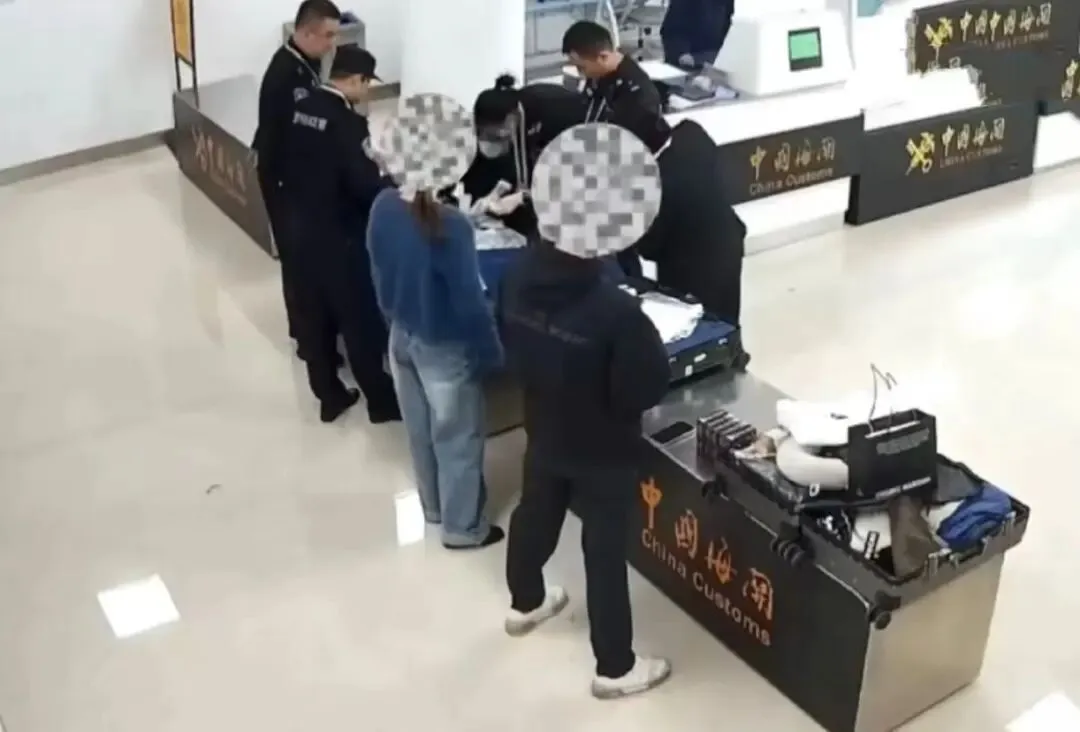 看画面,携带这些药的旅客一行二人,一男一女,年纪都不大,不知道药是从哪一个的行李箱里查出来的。