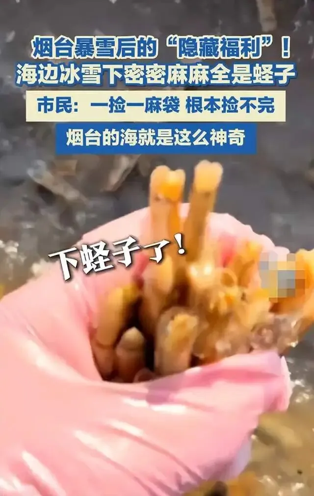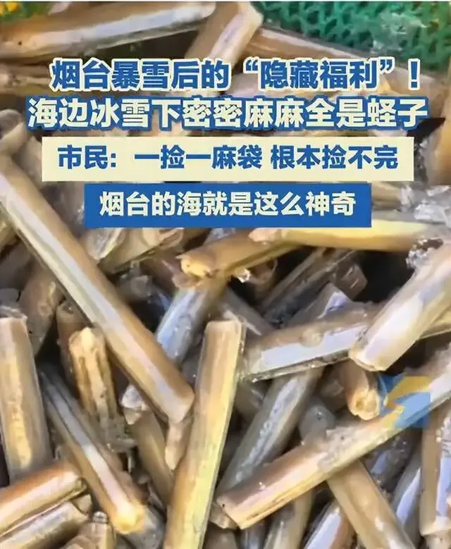 答:大雪过后,烟台的开发区、莱山区的海滩上,密密麻麻的蛏子铺满滩涂,市民提着麻袋、桶蹲在岸边,随手一捡就是一把,有人单日收获数百斤,网友笑称“捡不完,根本捡不完”。