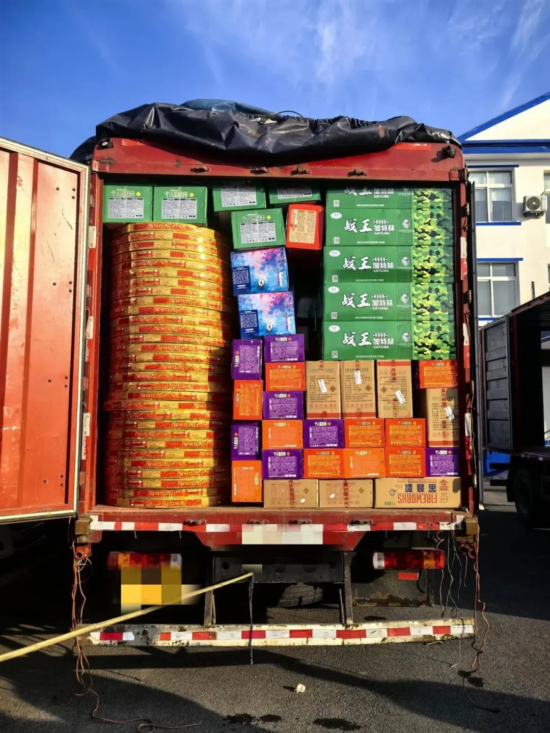 2026年1月11日,招远市公安局治安大队联合夏甸派出所开展烟花爆竹常态化排查整治工作,在招远市夏甸镇某村路某商铺仓库及其后院仓库内,查获大量烟花爆竹。