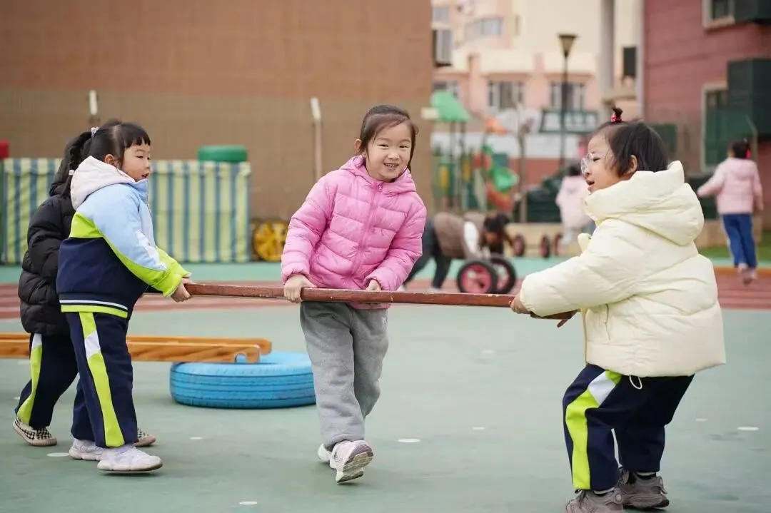 幼儿自主寻找材料、搬运器械、搭建场地,在运动中增强体质,在挑战中锻炼意志,在合作中提升能力,尽享运动之趣。
