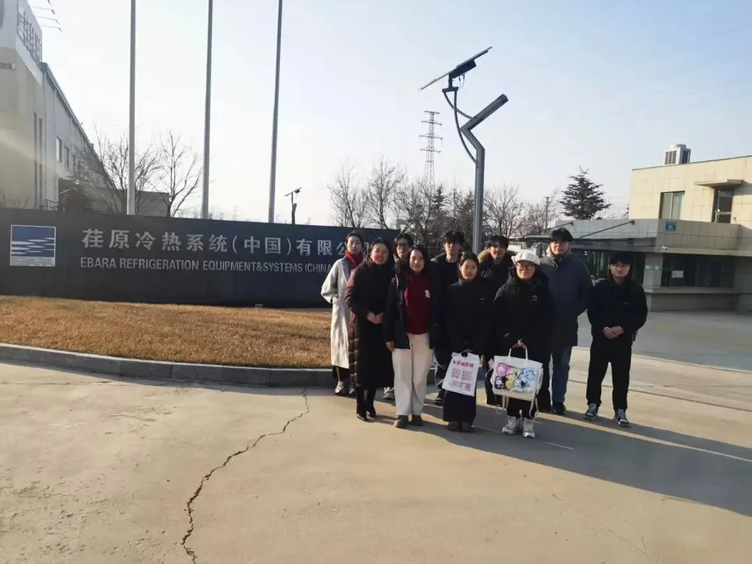 为搭建理论与实践的沟通桥梁,深化校企协同育人成效,1月9日,外国语学院日语系学生代表在系主任臧晓梅、实习指导老师郑茹的带领下,赴荏原冷冻系统(中国)有限责任公司开展沉浸式参观学习活动,近距离领略跨国企业的管理魅力与技术实力。