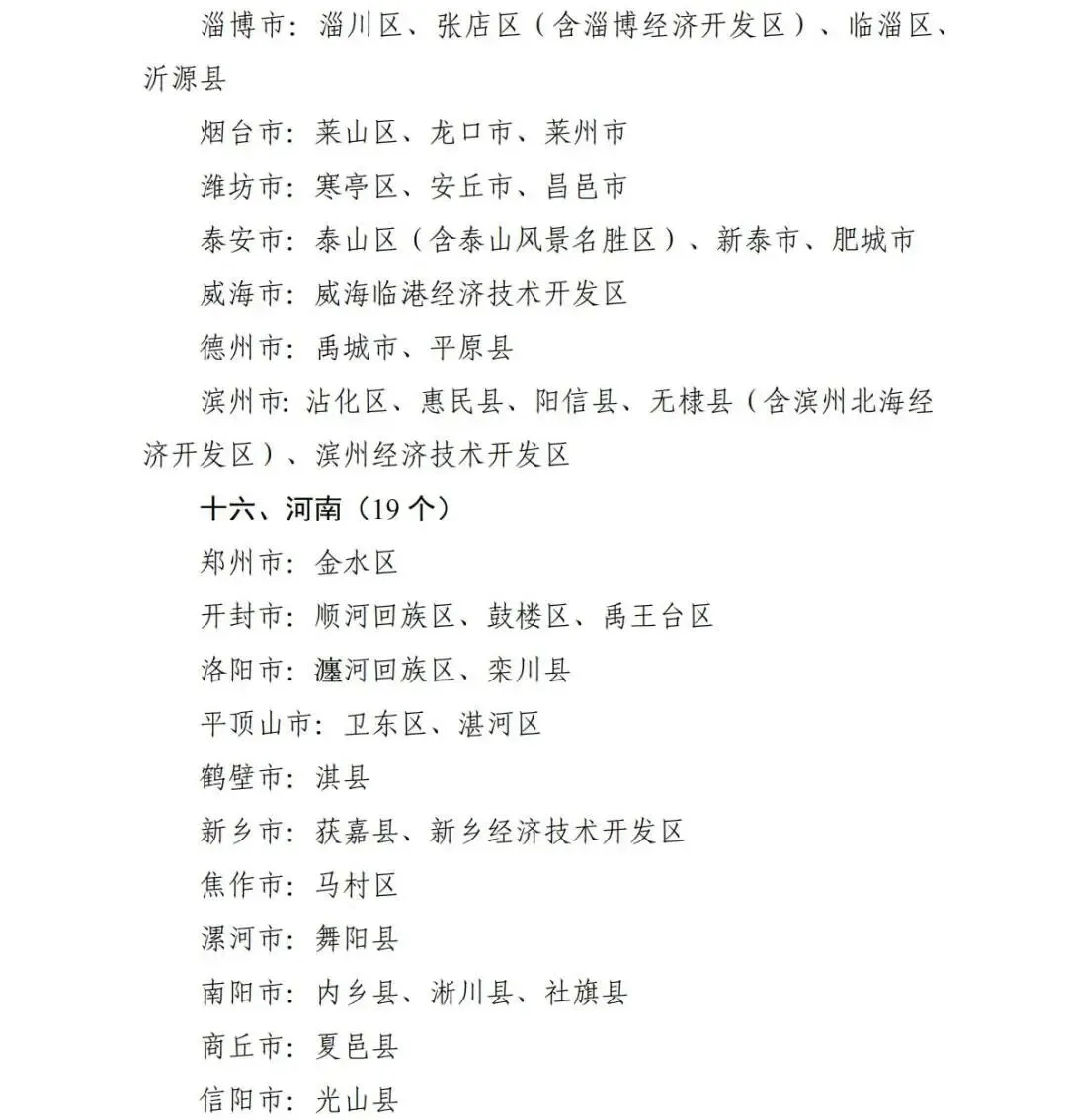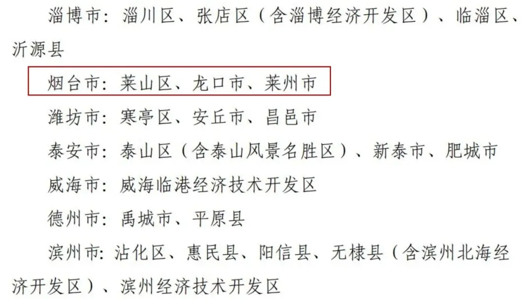 (市、区)山东名单(第一批)