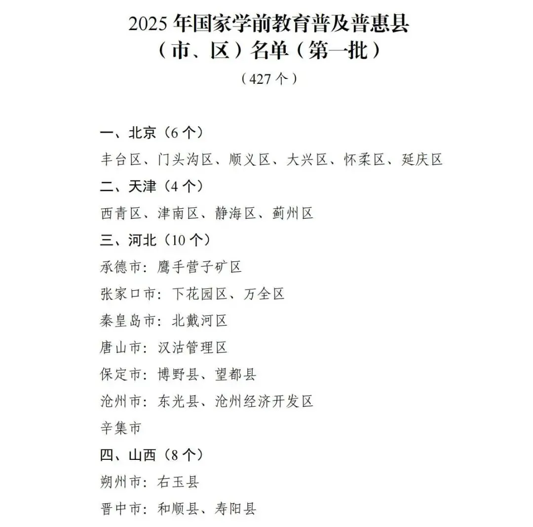 近日,教育部印发通知,2025年第一批认定427个县(市、区)为国家学前教育普及普惠县。其中,烟台3个县(市、区)入选, 一起来看……