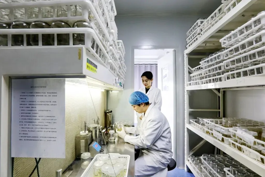 和人类接种疫苗防病同理,这里的马铃薯也“打上了针”。科技小院的年轻研究员们,通过数年攻关,成功研制出针对马铃薯主要病毒的弱毒疫苗。这种疫苗就像给植物提前注射的“模拟病毒”,让植株在接触真正病毒前就建立起免疫力。