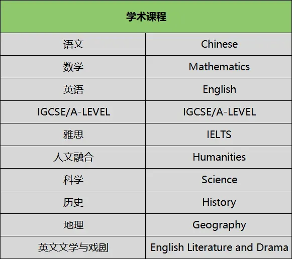 小初阶段在执行国家义务教育课程标准的基础上,小学借鉴新加坡数学教学思路,初中借鉴剑桥IGCSE数学教学思路,高中阶段设置A-LEVEL数学课程。