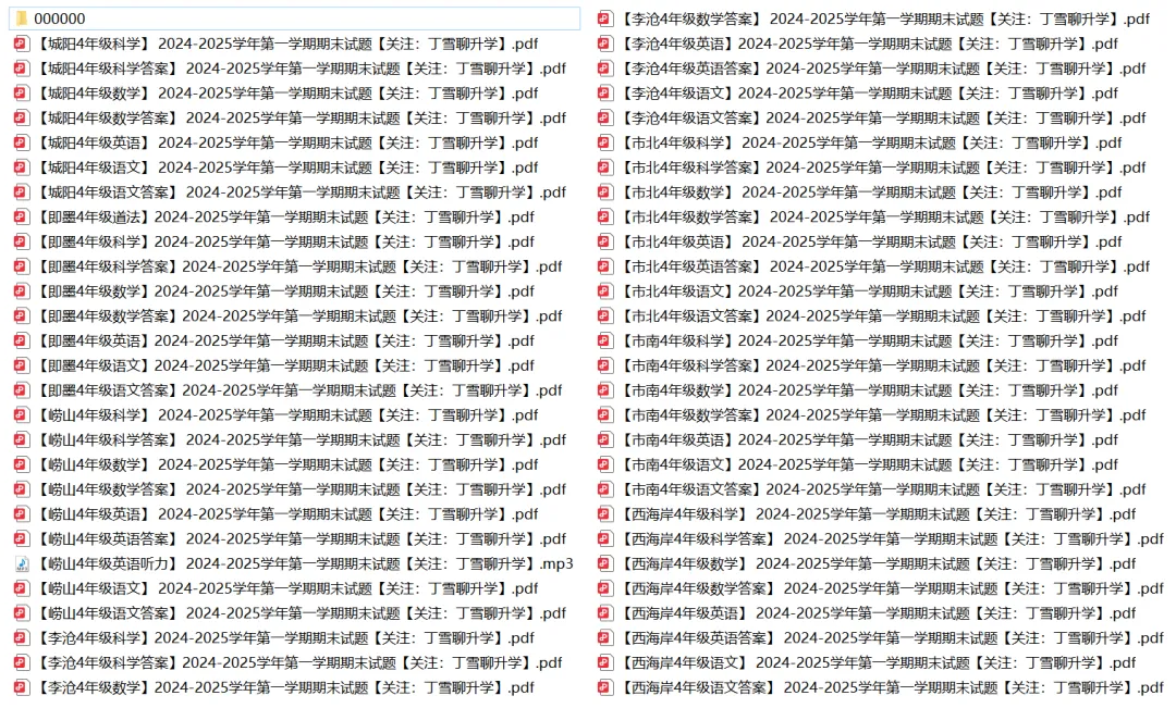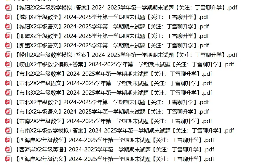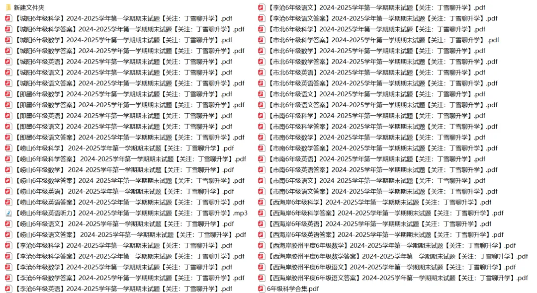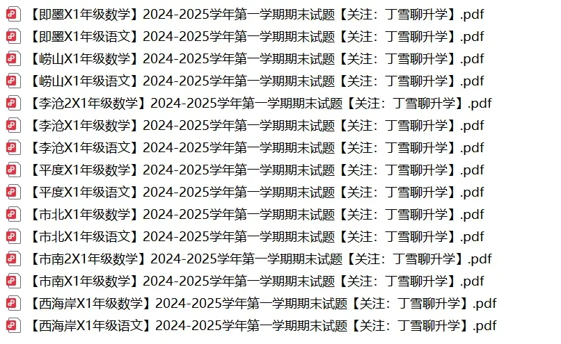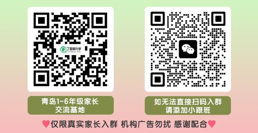 后续各区市期中期末真题,会优先第一时间更新在小雪的家长交流群内,公众号更新会晚一些。如有需要,可以直接扫描下方二维码进群~青岛1年级2024年起使用的是新教材,真题只可以做2024-2025学年第一学期的真题,2024-2023及其之前的都是老教材的内容意义不大。青岛2年级四科2025年使用的是新教材,且你们是第一批使用的,所以历年的卷子就不要做了。青岛3年级语文数学科学2025年使用的是新教材,且你们是第一批使用的,所以历年的卷子就不要做了。英语只可以做去年的。青岛4年级英语2025年使用的是外研三起教材,且你们是第一批使用的,所以历年的英语卷子就不要做了。语文数学科学正常。另外,为了方便大家按照各科的复习,丁雪根据2024-2025学年第一学期真题整理了各科试卷合集,如有需要,文末添加小跟班微信自行领取。文末“