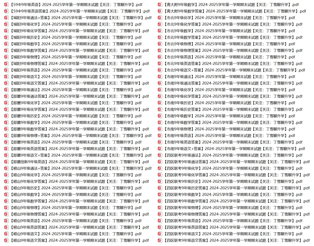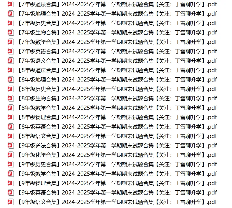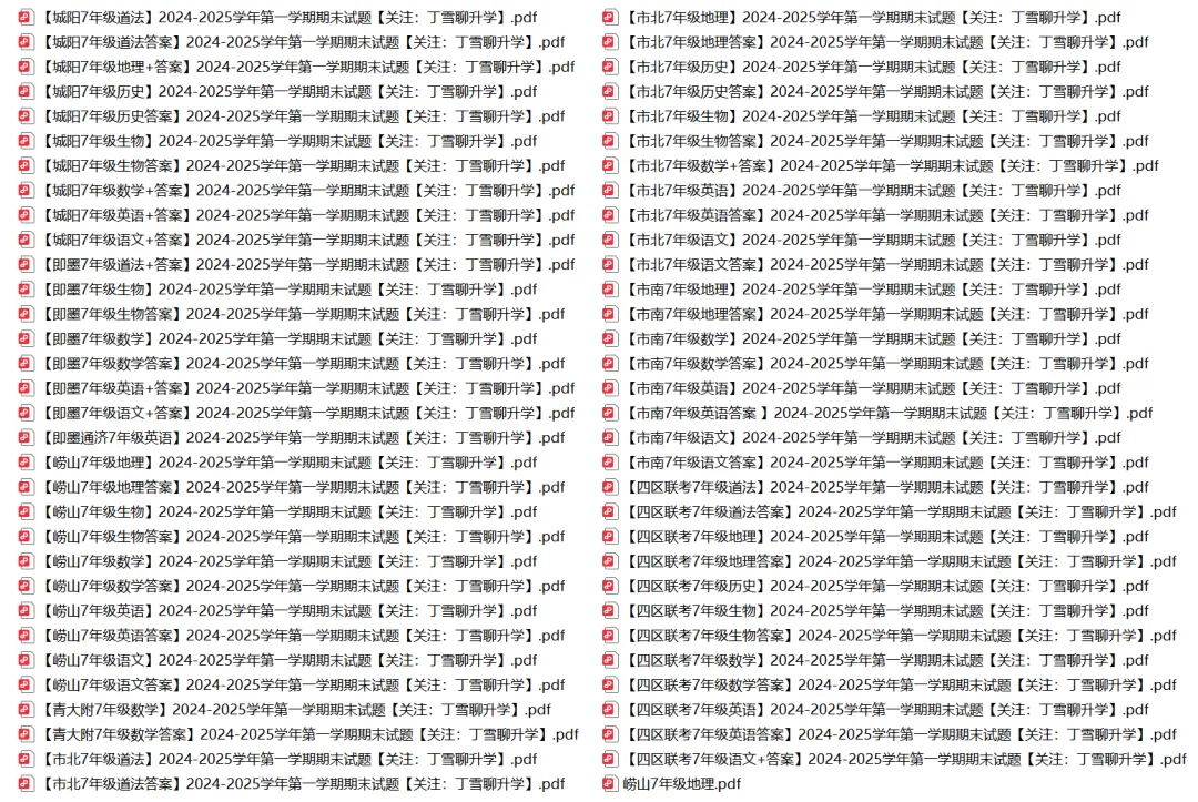 后续各区市期中期末真题,会优先第一时间更新在小雪的家长交流群内,公众号更新会晚一些。如有需要,可以直接扫描下方二维码进群~青岛七年级2024年起使用的是新教材,真题只可以做2024-2025学年第一学期的真题,2024-2023及其之前的都是老教材的内容意义不大。青岛八年级这一届是使用新教材的第一届(物理除外),严格来说做历年的真题意义不大,之前的都是老教材的,但也可以做,毕竟有些知识点还是一样的。另外,为了方便大家按照各科的复习,丁雪根据2024-2025学年第一学期真题整理了各科试卷合集,如有需要,文末添加小跟班微信自行领取。文末“
