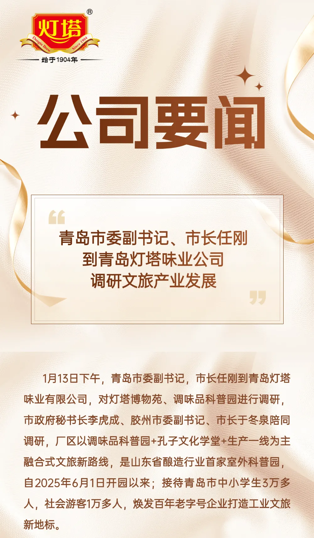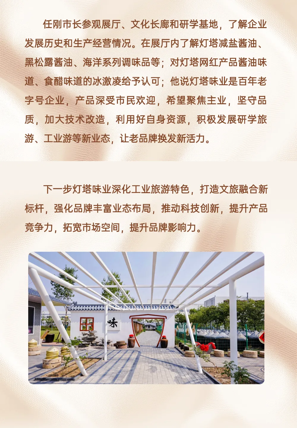 青岛市委副书记、市长任刚到青岛灯塔味业公司调研文旅产业发展