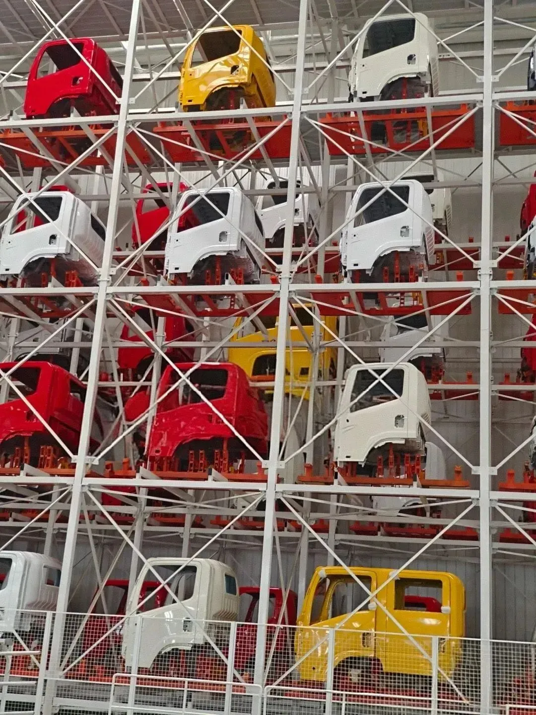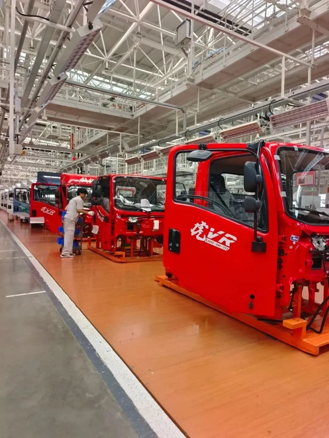8000吨压力机3秒一次冲压,孩子计时:一块钢板→车门骨架只需一首歌时间。 以“全自动化+柔性混流”为特色,提供ABB机器人集群实现,展现高适应性焊接 智造实力。312台机械臂同时挥舞,工程师让孩子手持激光笔指挥一台机器人点 焊,体验“未来工程师”。 观看纵梁冲压一次成型,亲手触摸卡车“脊梁”的厚度。以“超强承载+智能生产”为亮点,提供国内最大的6300T纵梁辊压线,AGV智能输送系统配合伺服装配夹具技术等,展现车架制造的技术天花板。 穿上防静电服,穿越42道喷涂工序,看水性漆如何在90℃烘干房瞬间变色。 计时器大屏倒计时,见证一台重卡从空车架到四轮落地的全过程,孩子惊呼“比拼乐高还快!”真车驾驶舱 mini 课堂