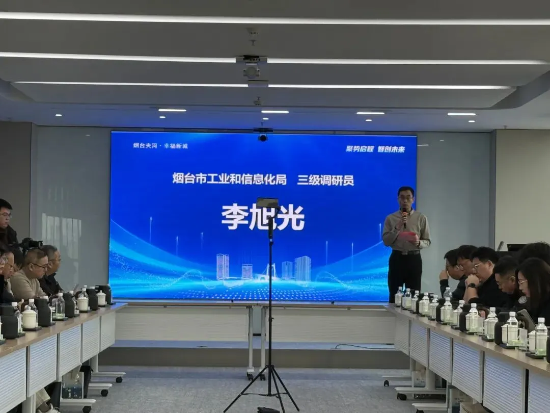 烟台市工业和信息化局三级调研员、夹河·幸福新城指挥部招商服务部部长李旭光、芝罘区工业和信息化局党组书记安倩坤、烟台主城控股集团副总经理、烟台数字经济产业创新中心主任冯雪梅等领导出席活动,李旭光为本次活动致辞,烟台市工业互联网协会秘书长沙楠主持会议。