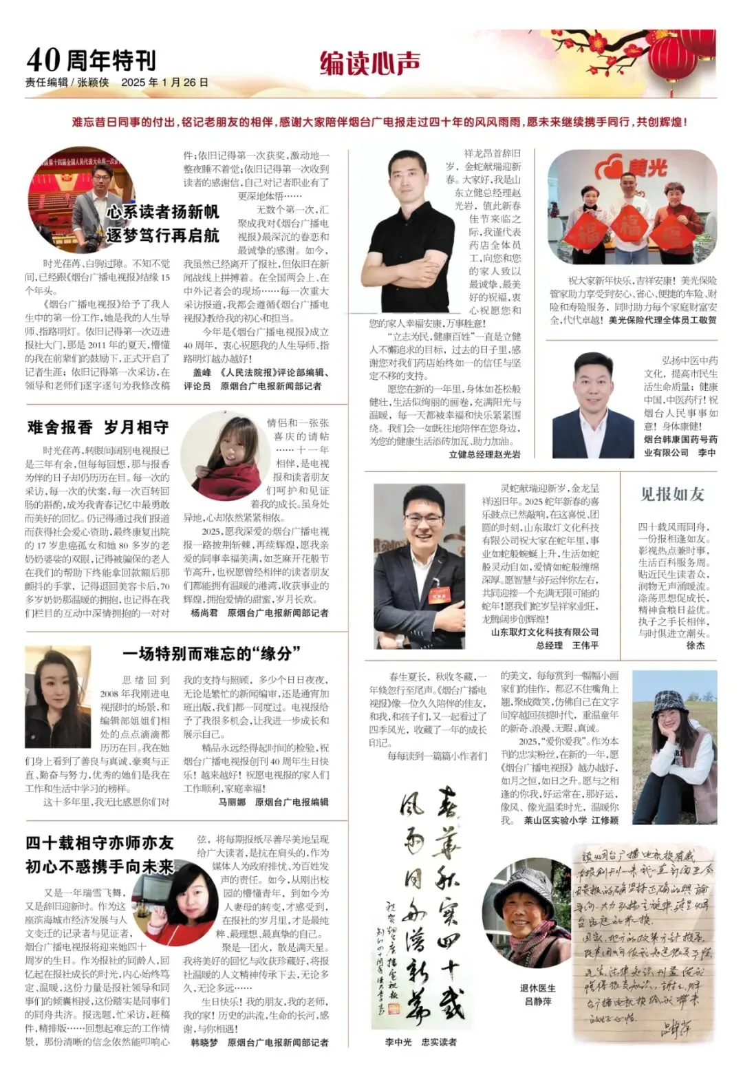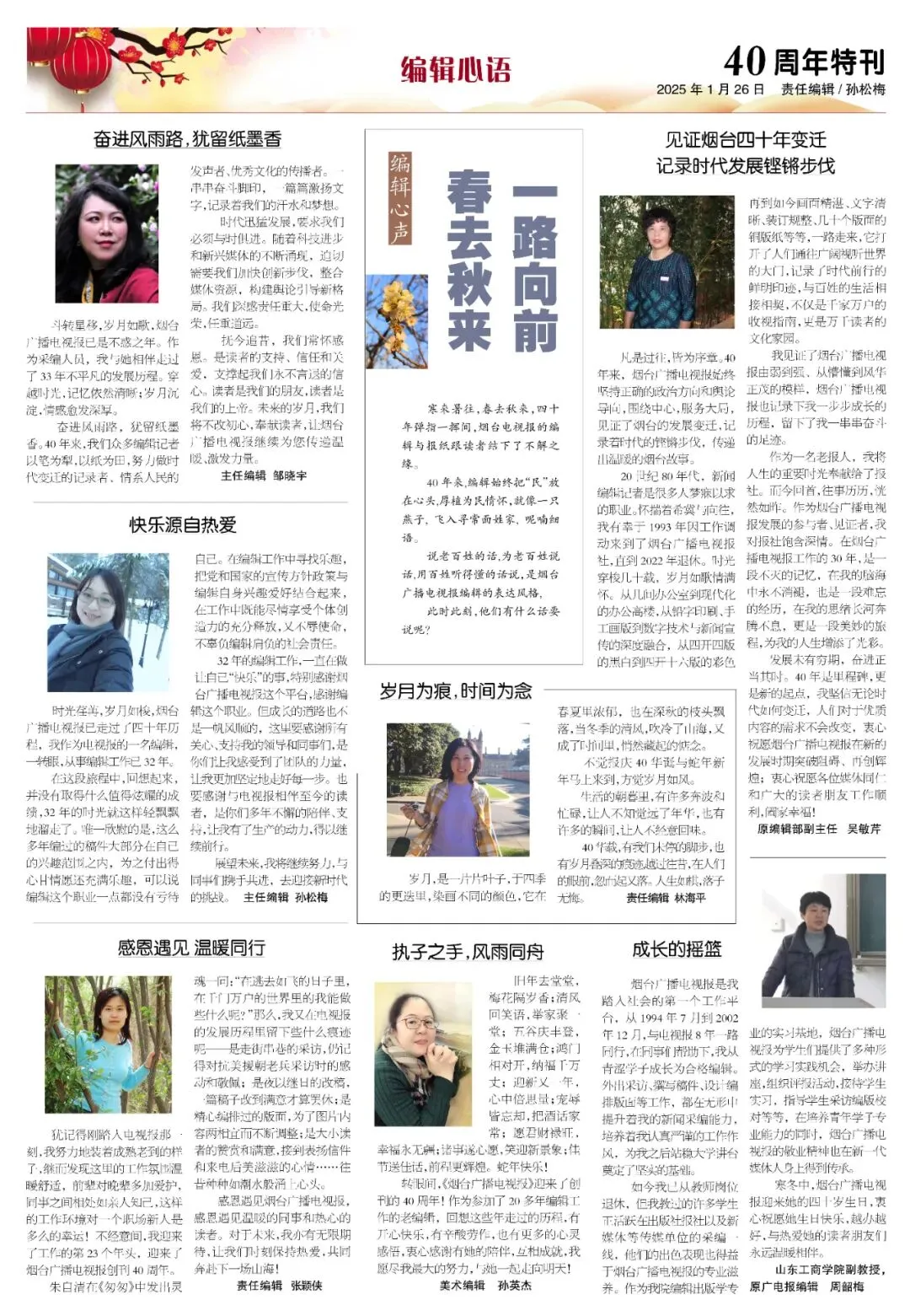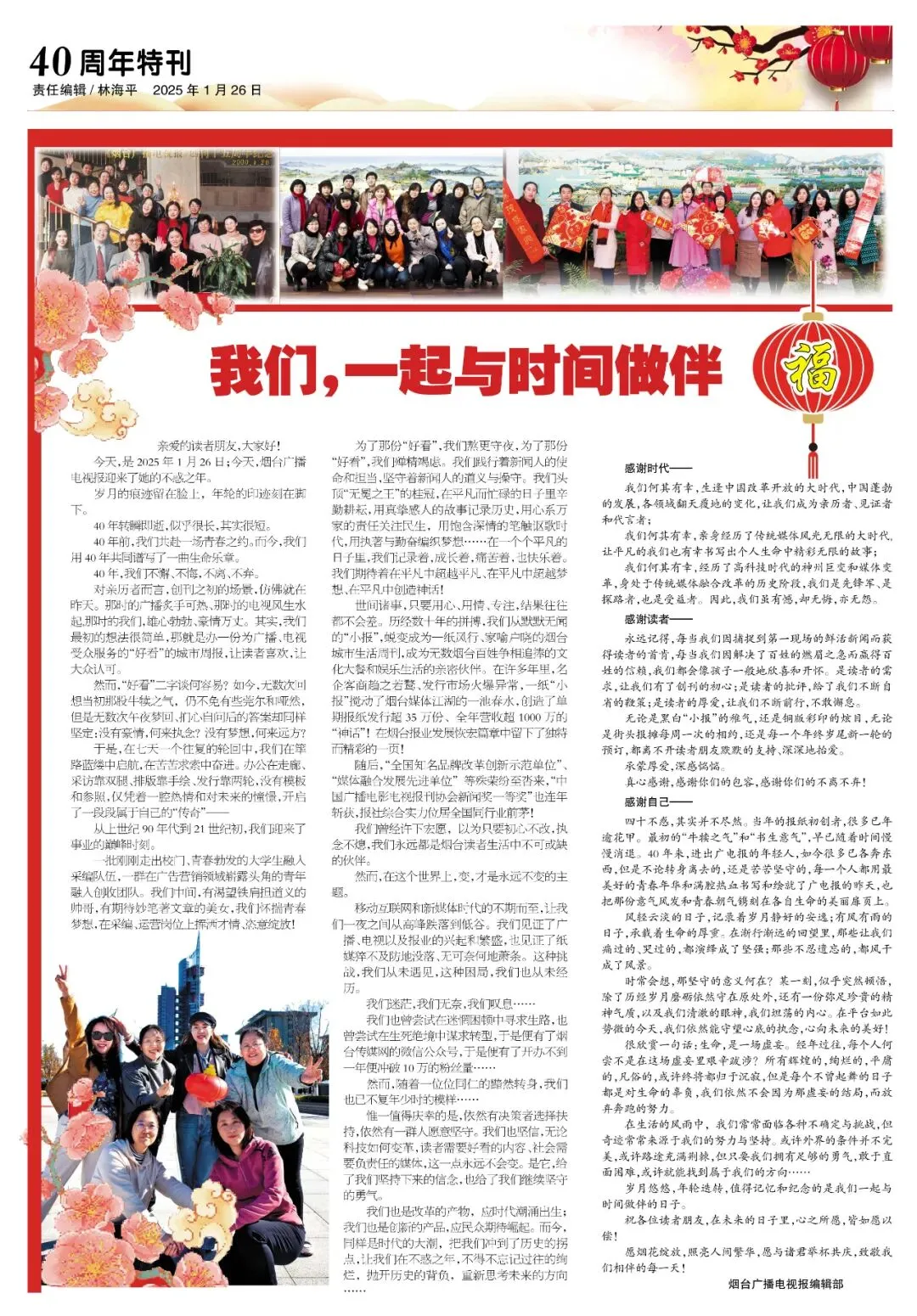 今天,是2025年1月26日;今天,烟台广播电视报迎来了她的不惑之年。