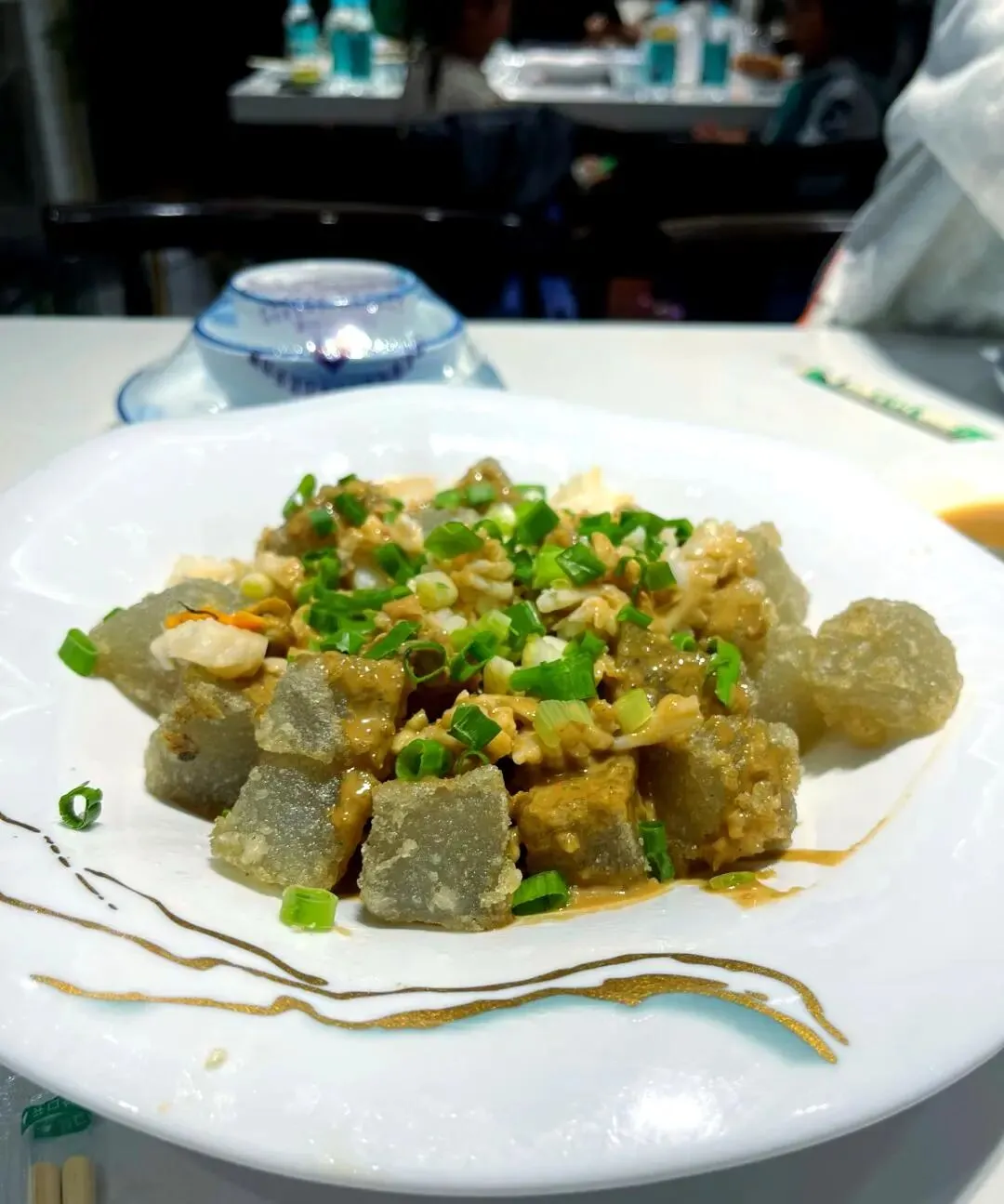 焖子是当地小吃,地瓜淀粉冻切片,煎到两面起壳,蒜汁一浇,路边闻着就走不动路。