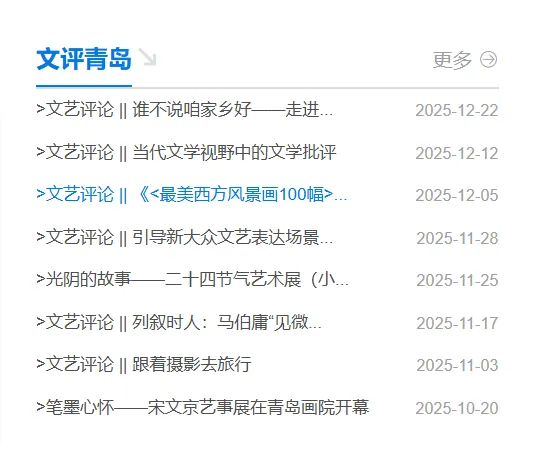 2025年是“十四五”规划的收官之年,是一个具有承上启下意义的重要节点。党的二十届四中全会胜利召开,擘画了未来五年我国发展的宏伟蓝图。回望过去的一年,青岛文艺的年轮镌刻着滚烫的印记与坚实的步履。从全国大学生曲艺周的欢声笑语,到“上合之夏”舞蹈展演周的艺彩纷呈;从“五月的风”系列活动的文艺浸润,到“艺心惠民”志愿服务的走深走实;从“潮起大港”“溪山行旅”采风创作的丰硕成果,到各艺术门类精品力作的繁花竞放。百余项文艺活动扎根山海沃土,上千件精品力作彰显艺术活力,“音乐之岛”“电影之都”“水彩之都”名片愈发鲜亮,艺术城市建设迈出更加坚实的步伐。文艺工作者们以笔为犁、辛勤耕耘,以艺为桥、联通心灵,用音符歌颂时代风华,用笔墨描绘山海画卷,用镜头定格城市变迁,让文艺之花绽放在基层一线,更好服务人民的精神文化需求。