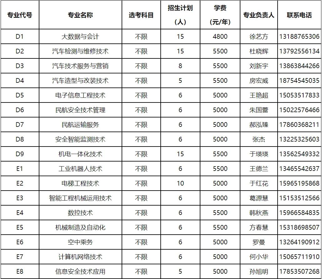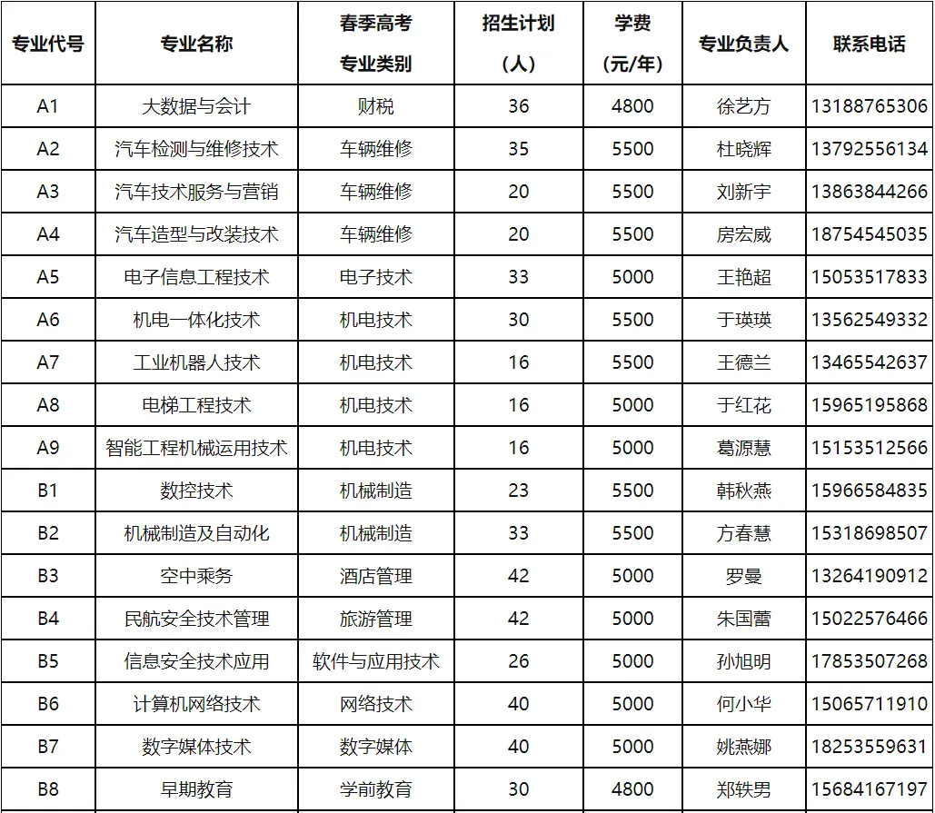 烟台汽车工程职业学院2026年单招综评招生专业计划表