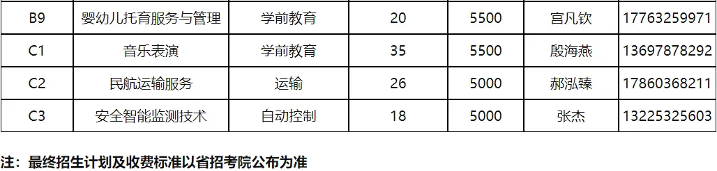 单独考试招生分专业计划表