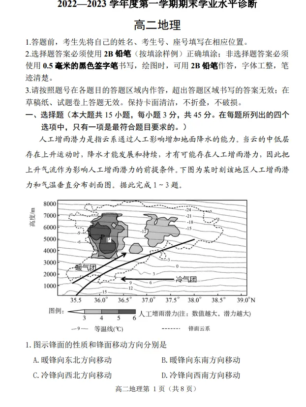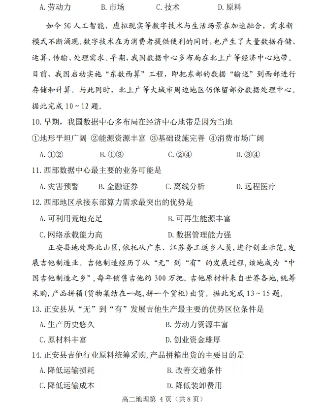 (1)海拔高,空气稀薄,大气透明度高,光照充足,光伏资源丰富;气候干旱,晴天多,降水少,光照时间长;位于高原地区,地势开阔,土地充足,适宜大规模布局光伏电站。(6分)