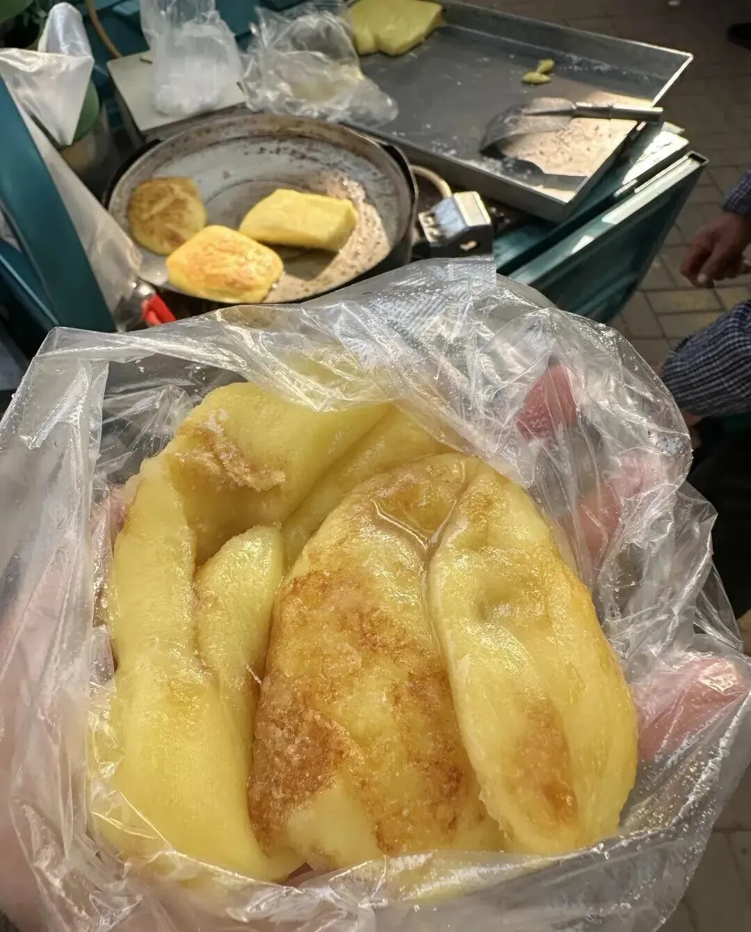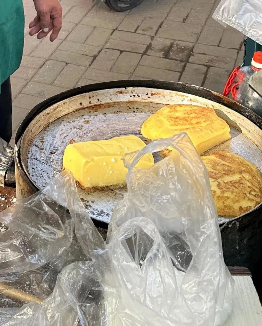 小时候放学 , 兜里揣着五毛钱一块钱 , 专门去巷子口等着。 远远就能闻到那股焦香味 , 排队的小孩一个接一个 , 眼睛都盯着那口平底锅。