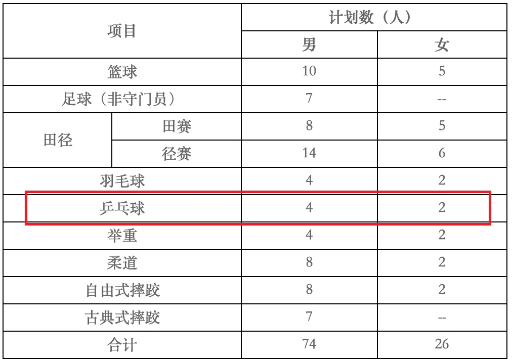 1、乒乓球预招4男2女