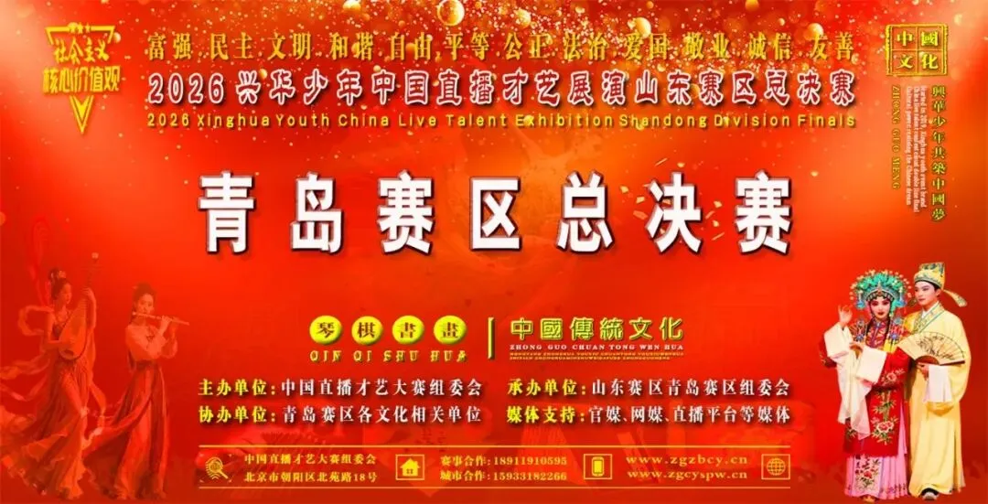 2026中国云赛展演活动以习近平新时代中国特色社会主义思想和深刻把握习近平文化思想为指导精神。全面贯彻落实中共中央、国务院印发的《新时代公民道德建设实施纲要》和《关于全面加强和改进新时代学校美育工作的意见》的通知精神,立足新时代人民群众思想特点和发展规律,在全社会大力培育和践行社会主义核心价值观,为促进青岛全市人民道德素质和文明素养不断提升。加强青岛优秀艺术人才队伍的建设,丰富青岛公共服务多元化,增强全市人民的文化自信获得感和幸福感,选拔和储备优秀文化艺术人才,不断推动全市公共文化服务。有中国直播才艺大赛组委会、华东赛区组委会、山东赛区组委会、青岛赛区组委会共同开展“2026兴华少年中国直播才艺展演云端双线总决赛”山东青岛赛区系列文化展演活动。