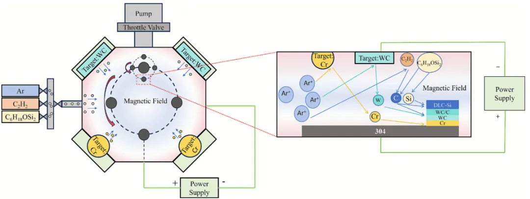 来自青岛理工大学等的研究人员通过HiPIMS技术,在304不锈钢基底上制备一系列不同硅含量的DLC-Si薄膜,系统评估硅含量对薄膜微观结构、力学性能、摩擦学性能及电化学腐蚀行为的影响,探索其在海水环境中的低摩擦、高耐腐蚀机制,为海洋工程装备的表面防护提供理论依据。相关成果于2025年12月31日以“Achieving low friction and high corrosion resistance DLC-Si films by HiPIMS”为题发表在《Surface & Coatings Technology》。