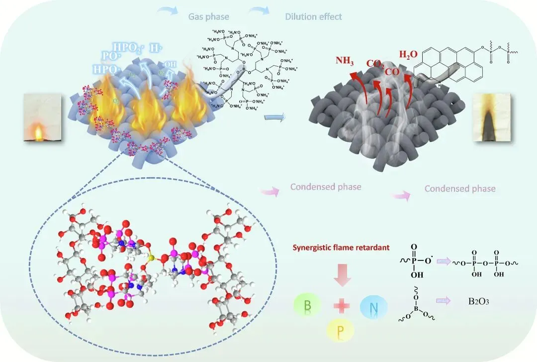 棉织物因其柔软、透气、吸湿性好等优点,被广泛应用于服装及家居领域,但其高度易燃的本征特性使其在使用过程中存在显著的火灾安全隐患。相关统计表明,纺织品燃烧已成为全球火灾事故的重要诱因之一,对人员生命安全与社会经济造成严重损失。传统卤系阻燃剂虽具有较高阻燃效率,但在燃烧和使用过程中易释放有毒有害物质,已逐渐受到环境法规与健康风险的双重限制。在此背景下,开发高效、低毒、可持续的无卤阻燃体系,尤其是能够与纤维基体形成稳定化学结合、兼具耐洗性与长期服役性能的阻燃改性策略,成为纺织材料安全领域亟需解决的关键科学问题。近年来,以磷系阻燃剂为核心并引入氮、硼等元素构建多元协同体系,被证明在促进脱水成炭、抑制热释放及降低烟毒性方面具有显著优势,为棉织物阻燃改性提供了新的研究方向。