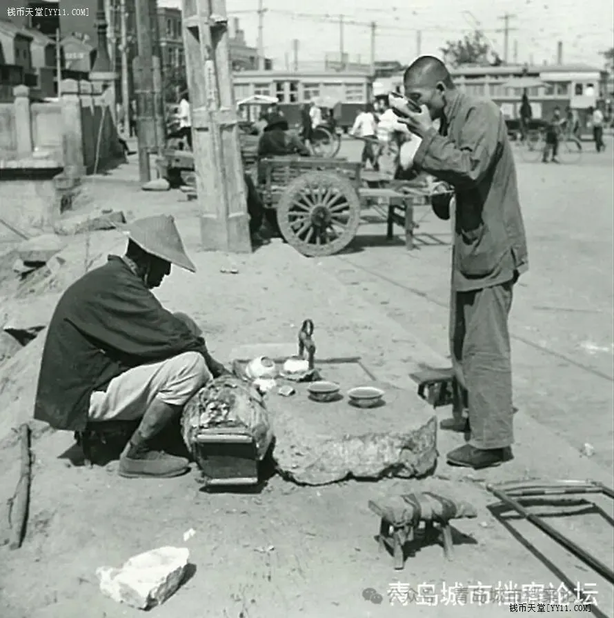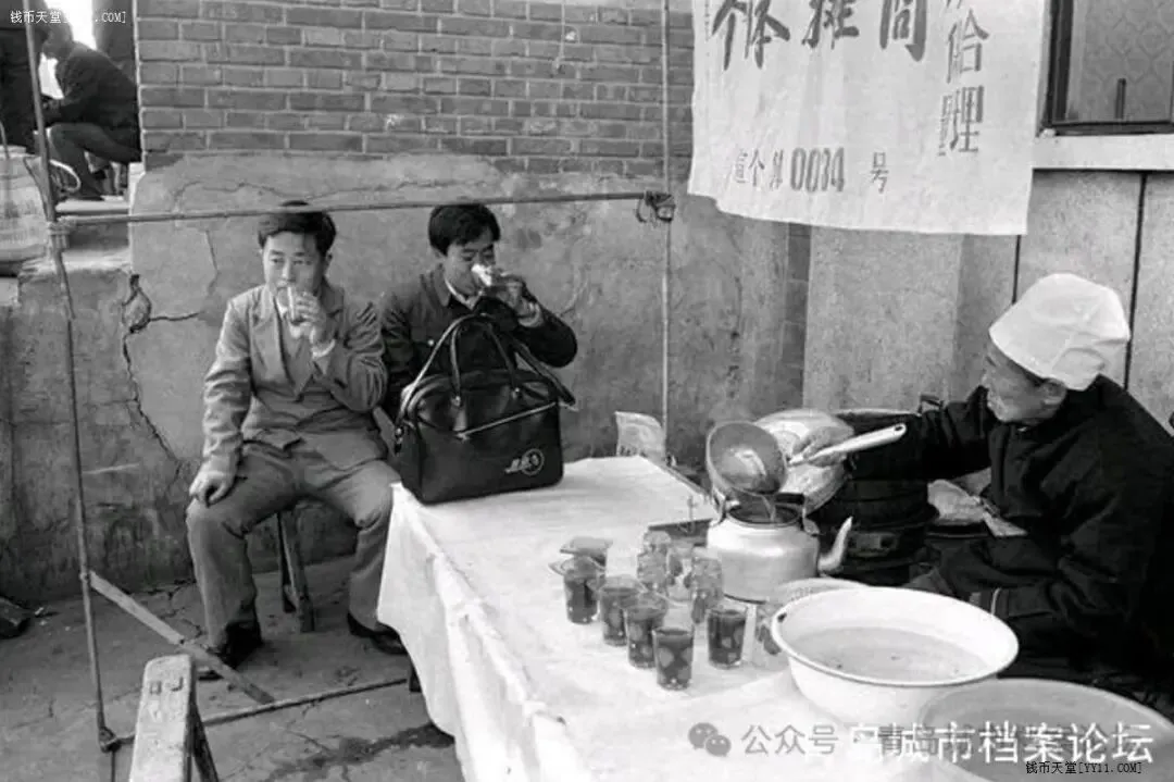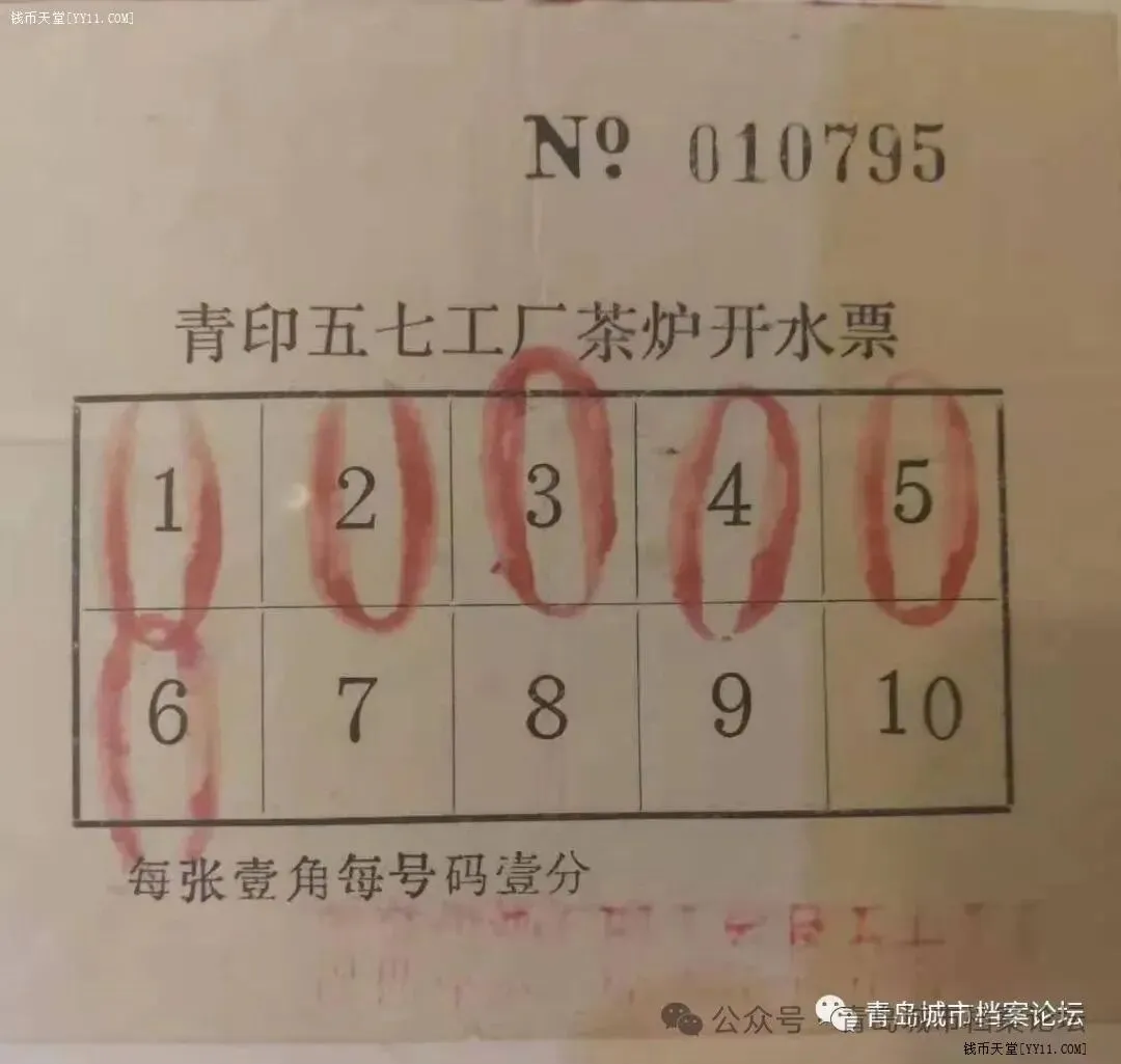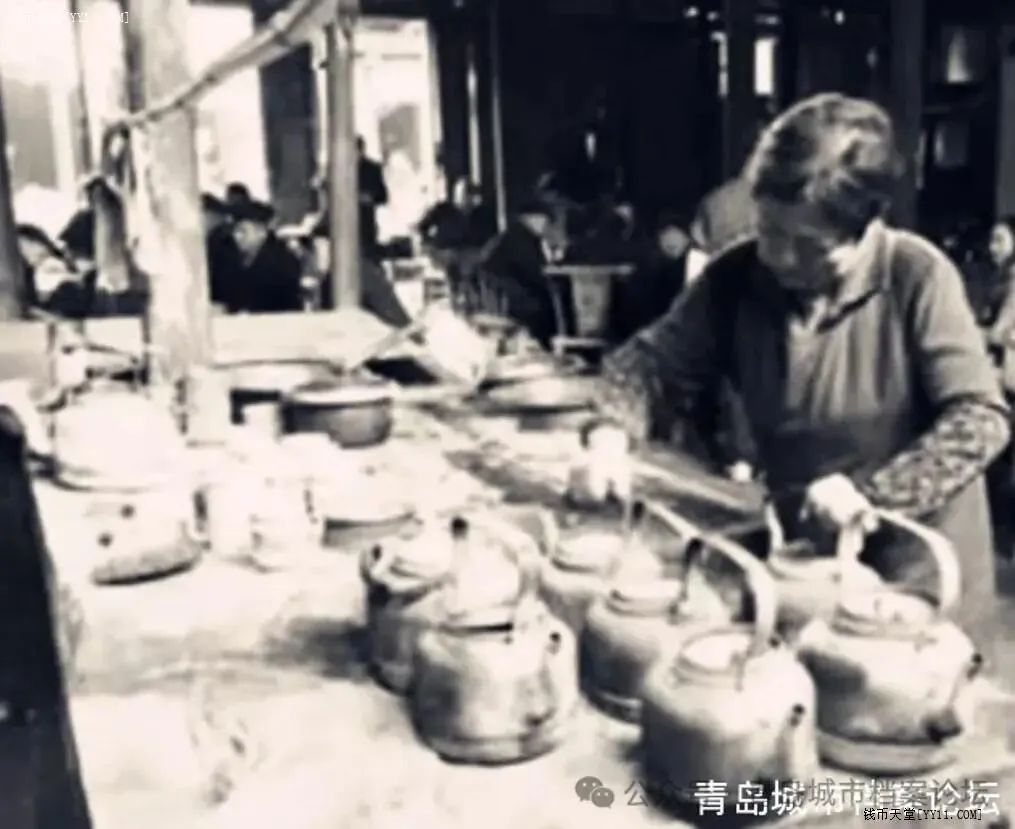 青岛的卖水行当大约起步在20世纪20年代,工业的发展,大量的农民进入城市,当时运输业比较落后,基本靠人力地排车承担,天暖和好说,冬天,出一身汗,再喝凉水,弄不好还要出人命,卖水行当应运而生。烧水用的是大铁锅,木头锅盖,烧柴草,拉风箱助燃。水开后,用瓢舀出盛大碗里。吃饭时,拉地排车的劳力,取出自己带的干粮,到水铺赊开水喝,通常年底结算。后来,卖水行当光卖水赚钱不多,就兼卖火烧,烟酒,杂货之类,但赊开水喝的传统直到60年代仍存在,到饭店要开水喝,一律不要钱。后来,烧水工具改革,有了散煤灶,用上了锡壶和白铁壶,吃饭喝开水,休闲喝茶水已成为岛城市民习惯。解放后,人们生活水平迅速提高,卖水行当空前发展,喝白开水改喝茶了。来了客人,下一壶茉莉香茶,姿拉姿拉喝上几个钟头是常有的事。开始用的七星灶,同时放7个水壶,卖水的人家空前热闹,水开了,依次排队,一分钱一壶。崂山大院,到了接水时间,居民纷纷拿着大小水桶前来接水。(吴正中摄影)青印五七工厂茶炉开水票再后来有了茶炉,有了鼓风机,水票花一块钱买一大张,每提一壶在小格子上盖一个小圆圈,青岛人叫“卡戳”。那时自来水都是公共龙头,卖凉水卖开水通常都在一块。水把全村或全宿舍里的人全紧密联系在一起。20世纪70年代,大街上兴卖大碗茶,在路边摆一个桌子,有的也放上几条凳子或马扎,使用玻璃杯子或大瓷碗,倒好凉茶水,再用方玻璃片盖住杯口碗口,以示卫生。凉茶水生津解渴解暑,卖水的是岛城夏季荫凉树下的一景。80年代的中山公园,公园门口的小摊上售卖的崂山可乐和桔子汽水。到20世纪80年代,随着自来水、煤气进入千家万户,电热水器的普及,卖水行当改朝换代,除了在工厂和大学校园里能见到烧柴油的或电茶炉外,大街随处可见的茶炉消失的无影无踪。卖水行当开始向现代化发展,不知什么时候,卖凉开水的摊子也卖起可乐、矿泉水、易拉罐来了,有的干脆全部瓶装饮料,外加香烟、糖果、卫生纸什么的,凉水摊子搞成杂货铺了。到现在卖大桶水成了一种产业,卖水行当不知解决了多少就业问题。在经济利益的驱使下,卖水行当折射环境的时代变迁。不仅青岛,鲁南枣庄,直至8090年代依然可见茶水摊,基本是夏天,开始卖凉饮料半分1分钱一杯,直至后来1毛一杯,大大的玻璃杯,小孩子一杯喝完就撑得慌了。80年代末爬泰山的时候,在山顶天街喝过盖着方玻璃片的玻璃杯凉白开糖水,2毛钱一杯。北京前门大碗茶和这个应该是一样的,我们小时候许昌的路边也有。现在,看不见这些了。转发,有改动,如侵权删除。