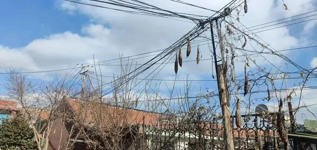 曲女士说,她家的平房位于掺驾疃村109号。屋顶上密密麻麻架满了线缆,有的看起来像供电线缆,有的像通信线缆,毫无例外这些线缆都是紧贴着自家屋顶或外墙穿过。曲女士担心这些线缆常在空中摆动会扫落屋顶上的瓦片。同时,这些线缆很长时间没有维护过,外面的绝缘皮已老化,容易引发火灾事故。