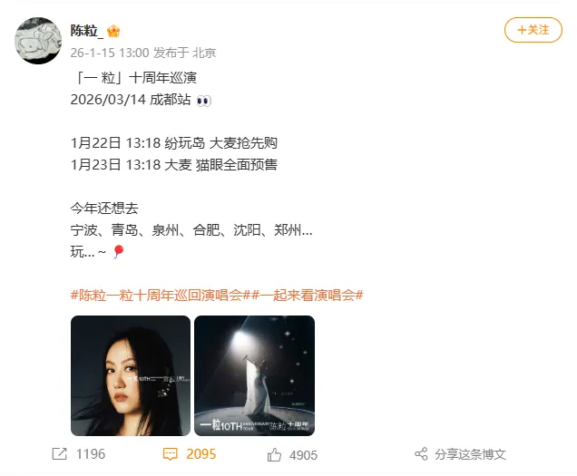 发布2026年的巡演计划。