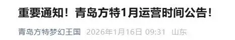 “青岛方特梦幻王国”微信公众号发布