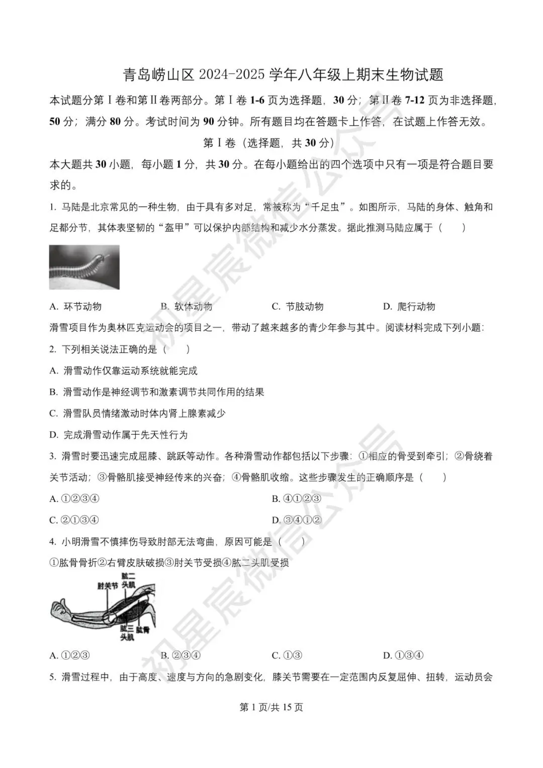 青岛崂山区2024-2025学年八年级上学期期末生物试题