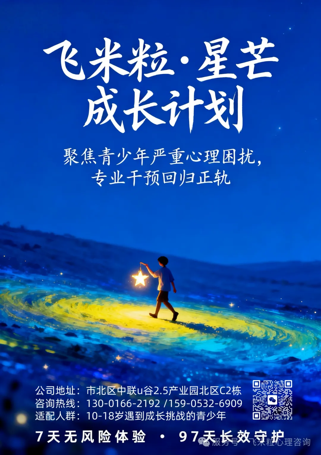 作为青岛飞米粒心理咨询的核心服务产品,星芒体系的价值从来不是“快速解决问题”,而是像一盏星灯,照亮青少年内心未被看见的角落,也让家长学会用孩子能接受的方式靠近。比起传统按时收费模式的“被动倾听”,星芒的“主动引导+工具辅助+效果保障”模式,更贴合青少年心理需求。就像小航在最后一次咨询时说的:“‘星小芒’告诉我,我的情绪不是错的,妈妈现在也知道了。”这份被看见、被接纳的温暖,正是青岛飞米粒心理咨询通过星芒产品传递的核心力量——让每个陷入心理困境的孩子,都能在星光指引下,重新找到前行的勇气,也让家长在合理的投入中,收获真正的亲子关系改善。