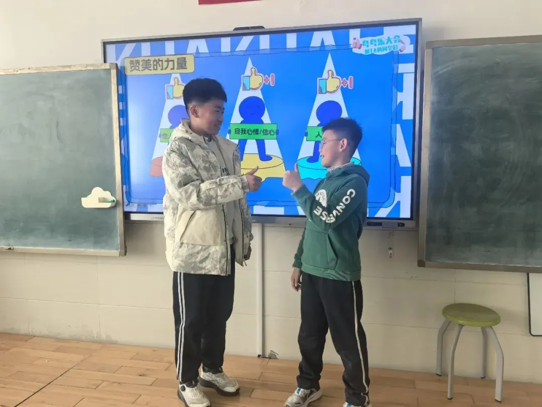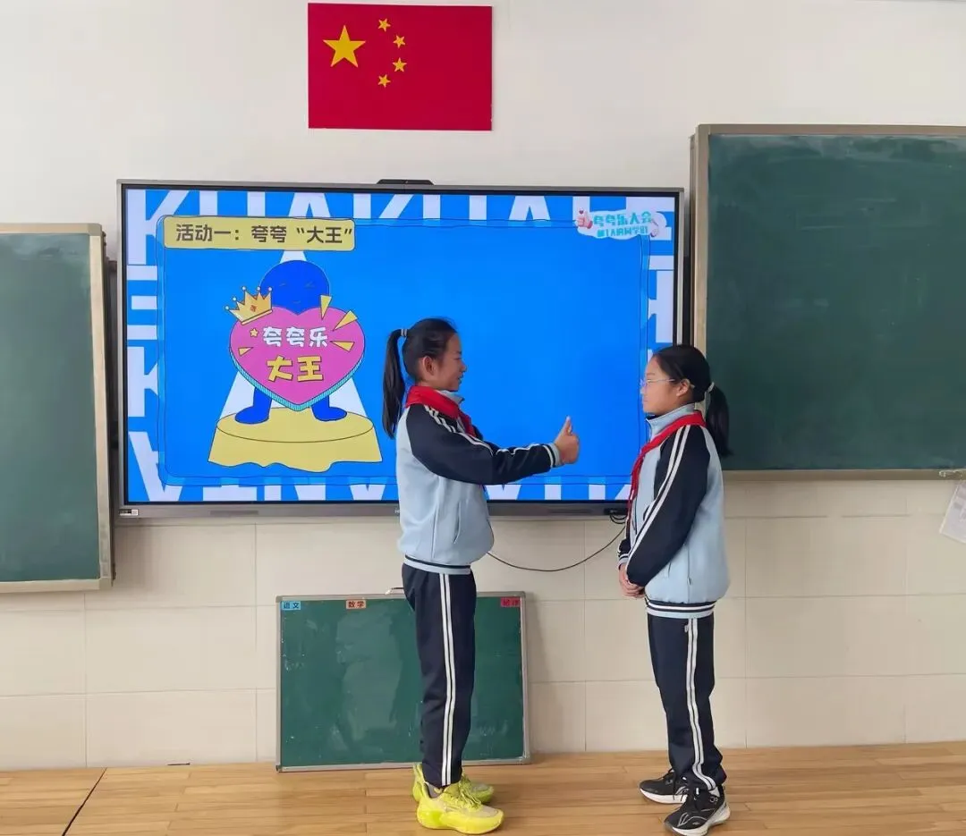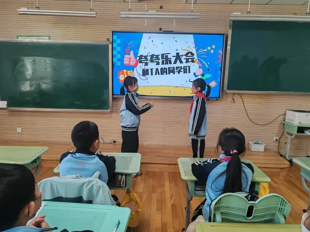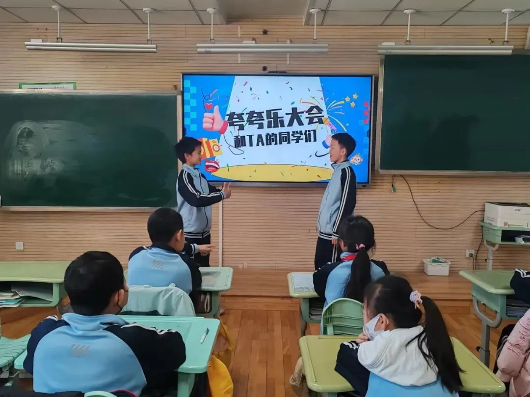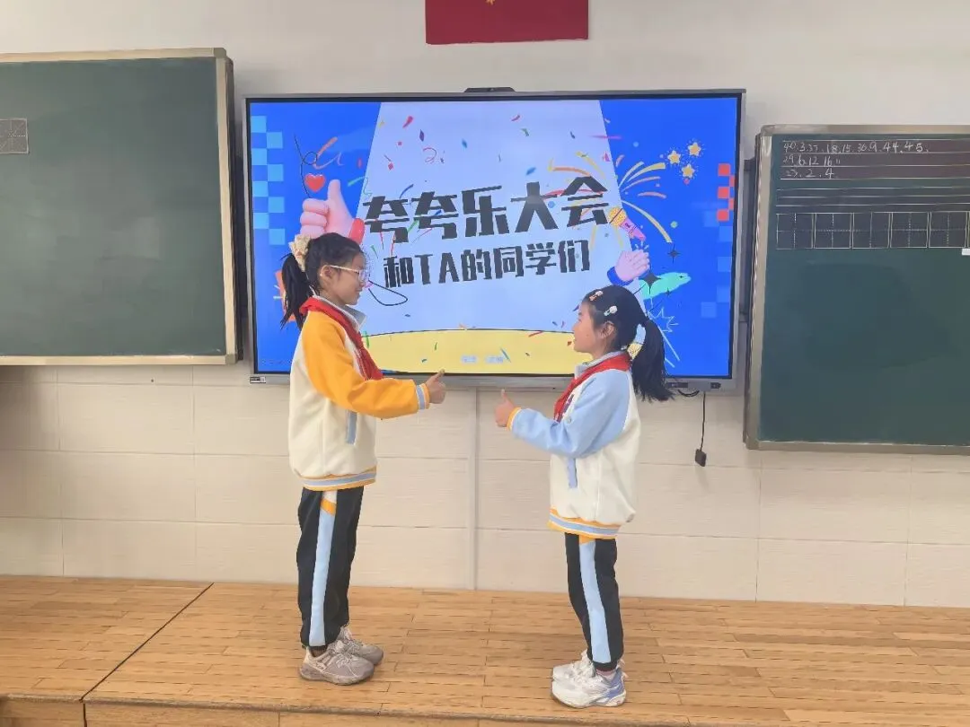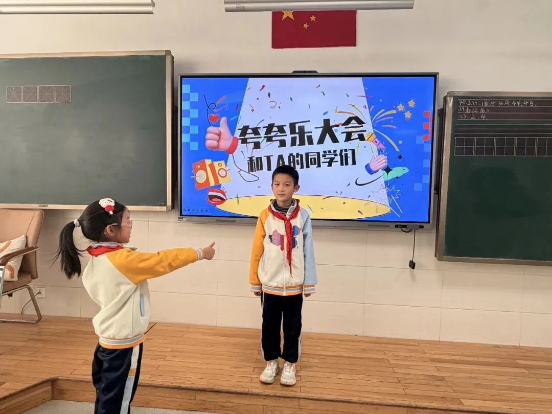 各班级同步开展“夸夸节”主题班会。班主任们通过趣味故事、情景互动等方式,引导学生明白欣赏他人的意义。同学们化身“小小夸赞官”,自信地走上讲台,分享身边伙伴的闪光点。一句句稚嫩又真挚的夸奖,让现场掌声不断,温暖四溢。同学们围坐在一起,畅所欲言,不仅发现了伙伴的优点,更学会了用善意的眼光看待身边的人和事,班级氛围愈发和谐融洽。