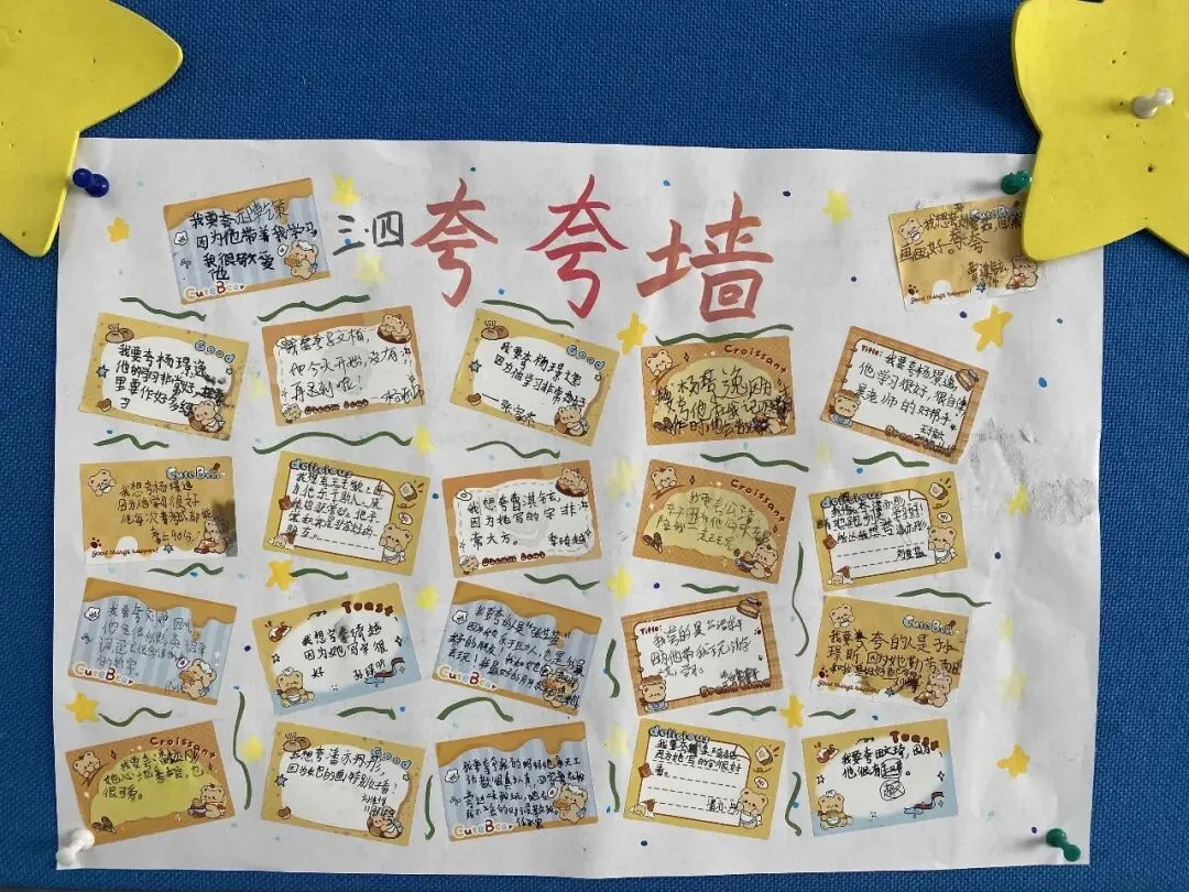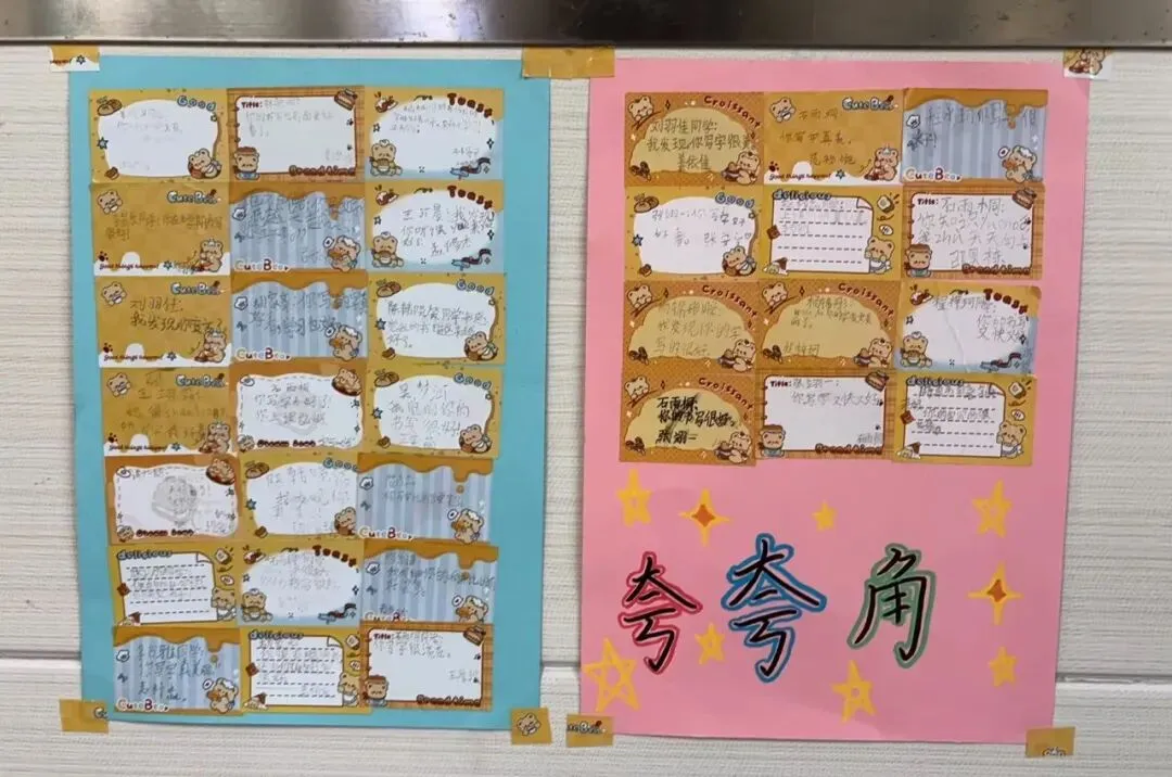 教室里的“夸夸角”成了最受欢迎的打卡地!五彩的便利贴上,写满了同学们的心里话:“你上课积极发言的样子真帅”“谢谢你借我橡皮擦”……一张张小小的便利贴,承载着大大的温暖,让每个走进教室的人都能感受到满满的正能量。