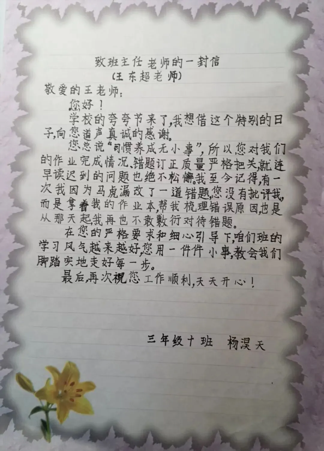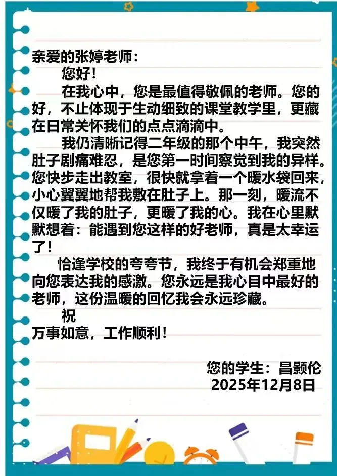 本次“夸夸节”还有一个特别环节——夸夸我的班主任。同学们用画笔、文字、歌声等方式,向辛勤付出的老师表达感谢。“老师,您辛苦了!”“谢谢您耐心教我做题”……一句句暖心的告白,让班主任们倍感欣慰,师生情谊在互相夸赞中愈发深厚。