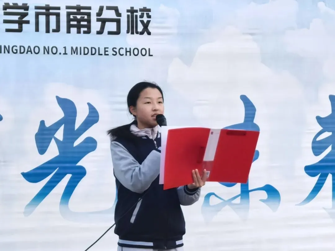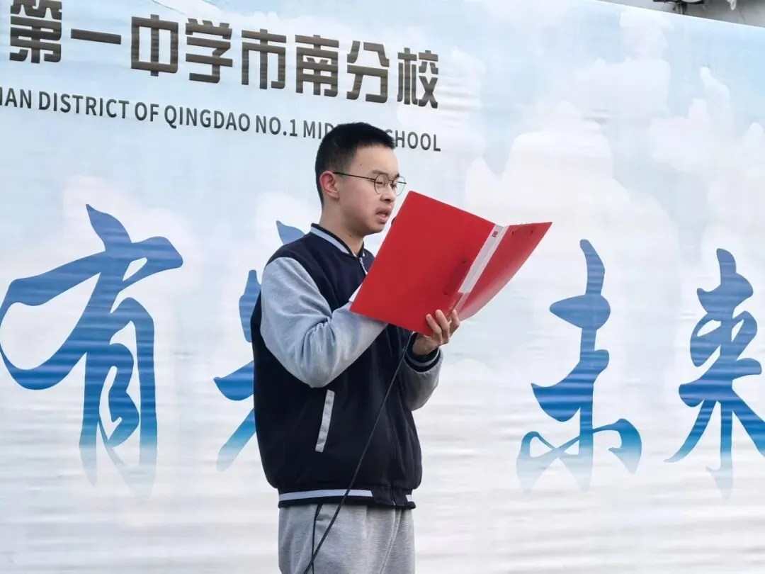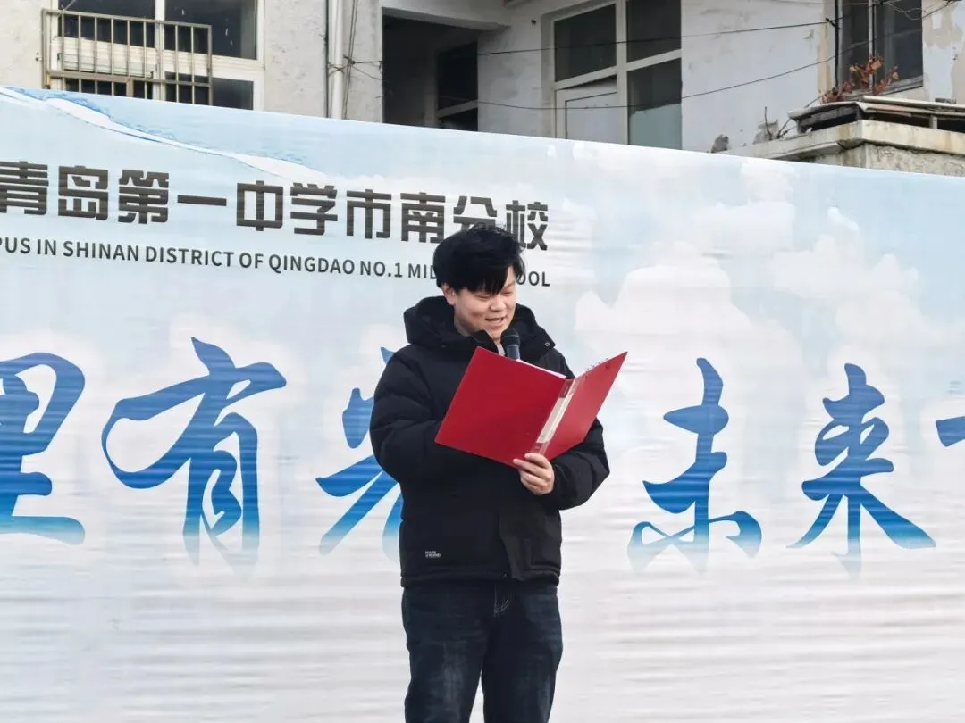 最后,青岛一中榉林校区年级主任孙迅讲话。他首先向全体师生送上新年祝福,随后回望了2025年青岛一中本部及榉林校区取得的丰硕成果,重点总结了榉林校区取得的成绩。同时,他对作为首届榉林校区学子的同学们寄予了厚望,希望同学们勇担使命、珍惜青春、追求卓越,携手奔赴美好未来。