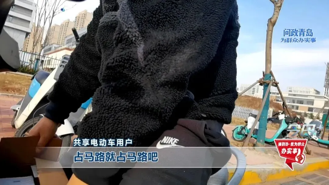 “两车道就成了单车道,共享电动车占了一个车道,尤其是早晚高峰,很影响通行。”市民说。“这样停确实很难看,显得马路非常乱。”