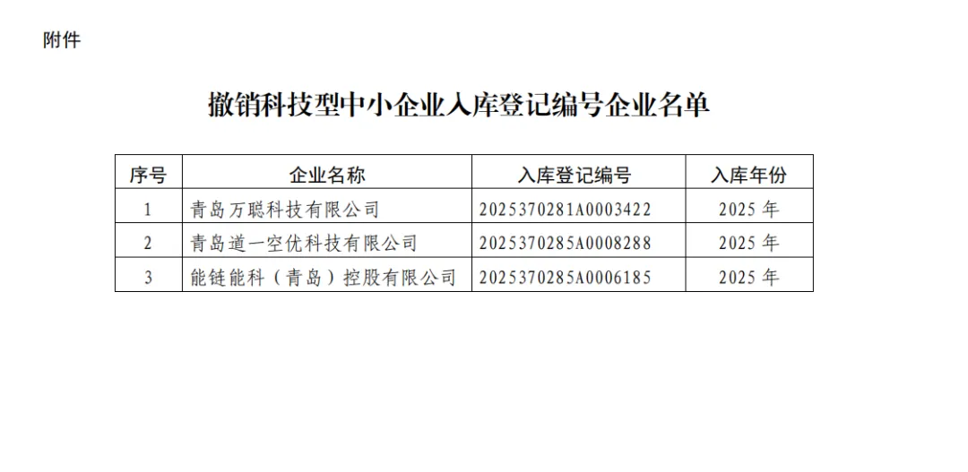 青岛市关于撤销部分企业2025年科技型中小企业入库登记编号的公告