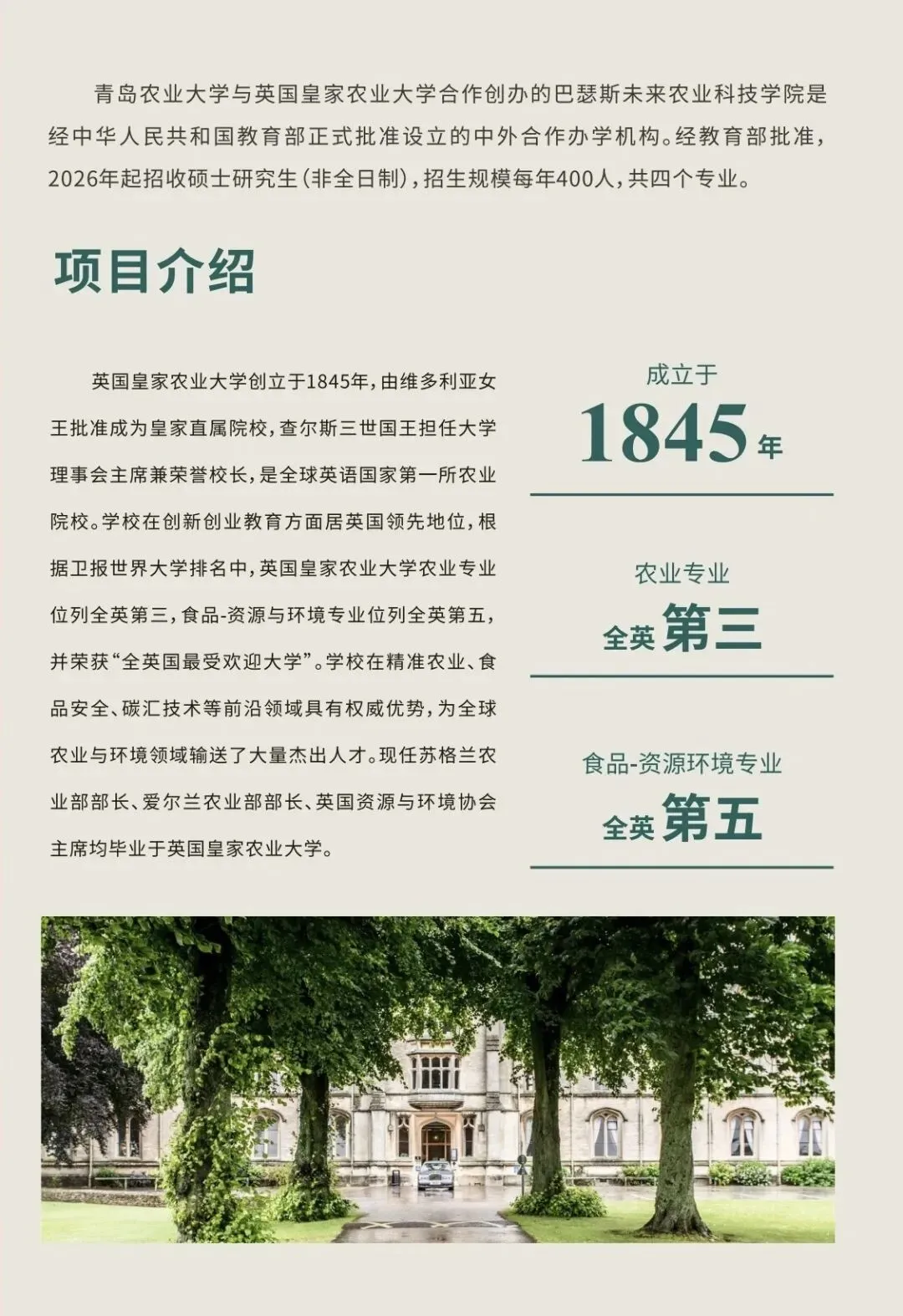 2026青岛农业大学-巴瑟斯未来农业科技学院硕士研究生项目招生简章