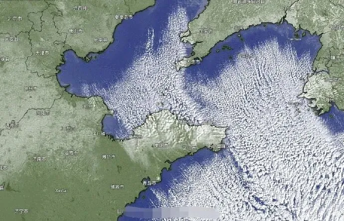 海洋热容量大,冬季海水温度的变化较气温及陆地的变化要平缓得多,南下的冷空气经过渤海海面时,与海水温度相差较大,低层空气增温、增湿,为空气对流运动提供了条件,使之在近海面形成具有一定对流性的层积云并产生降雪。