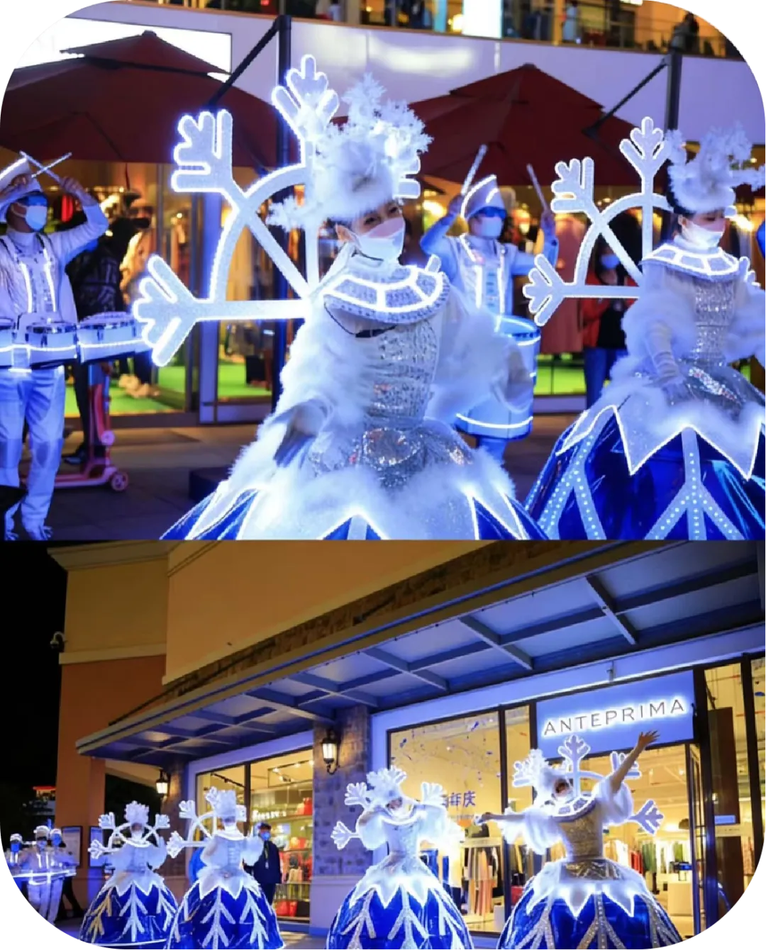 冰雪大巡游:流光溢彩的巡游队伍穿梭其间,电光鼓手身着闪耀服饰敲出激昂旋律,冰雪精灵与光影舞者灵动起舞,提前唤醒狂欢基因;