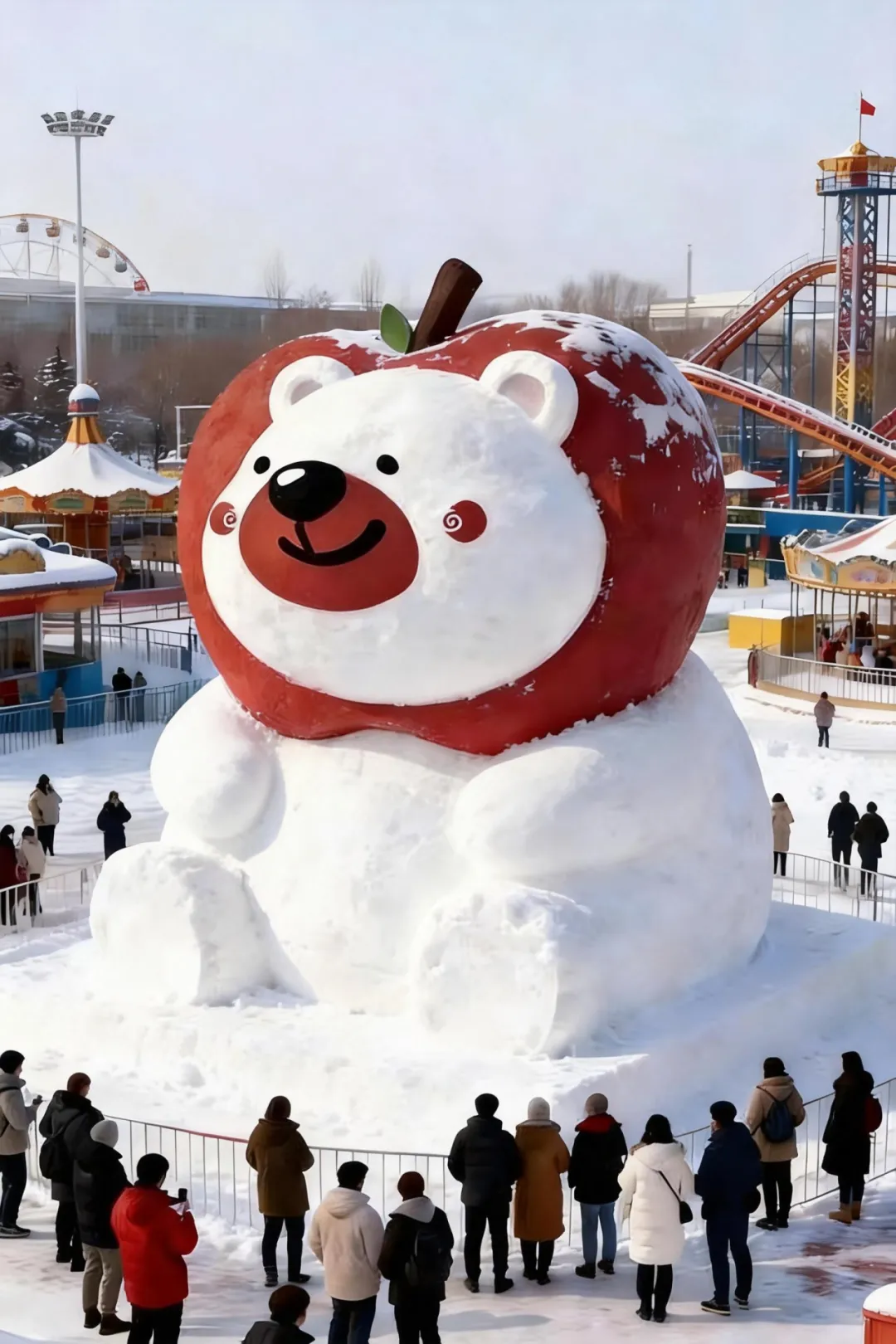 氛围感拉满的冰雪秘境:32米巨型冰场、直径5米的巨型苹果熊IP装置、主题门头与氛围围挡,随手一拍都是刷屏朋友圈的大片;夜间灯光亮起,灯带、灯串与雪花灯交织,让冰场化身梦幻冰雪王国;