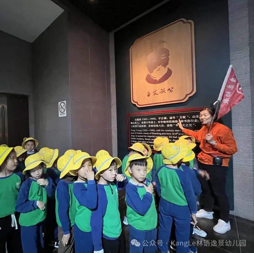 来到缅怀甲骨之魂的王懿荣馆,老师给孩子们讲解到王懿荣不但是名研究甲骨文的学者,他还是一位爱国将领。光绪二十六年,王懿荣在北京率兵与八国联军奋战,兵败城破,他写下遗书,壮烈殉国。王懿荣的英雄事迹给参观的孩子们深深上了一堂生动的爱国主义教育课,明白今天的幸福生活来之不易,更应好好珍惜,其在国家和民族危难之际,表现出的民族气节值得我们敬佩。