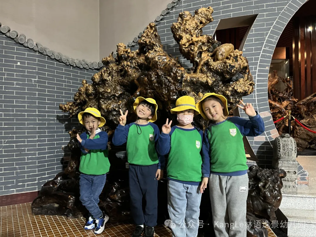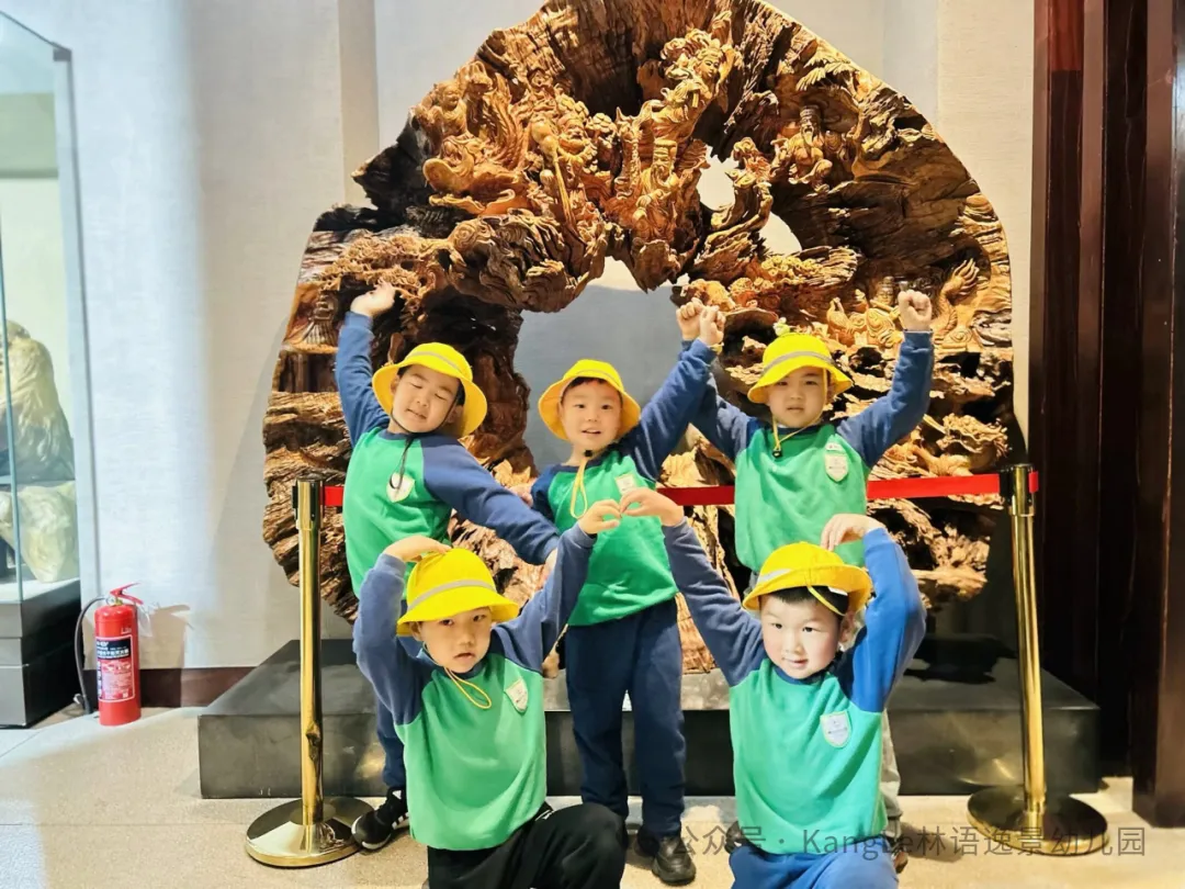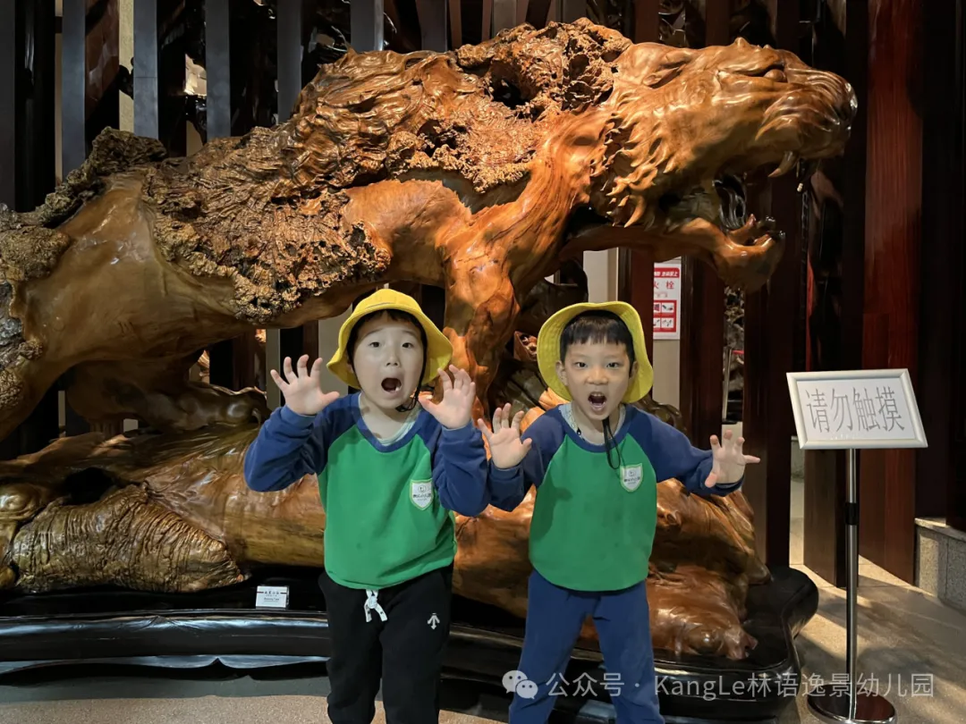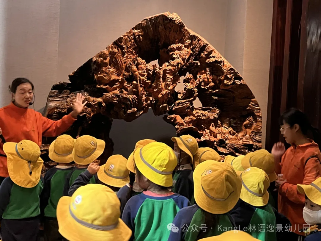 根雕艺术也是我们自然教育和生命教育的内容之一。一颗大树从树苗成长为参天大树,再成为博物馆里、家庭和公共场所中艺术品,这是生命的价值和意义。根雕艺术馆里,孩子们形象地感受到一颗大树的价值。老师们通过根雕艺术引导孩子们保护树木,保护自然。