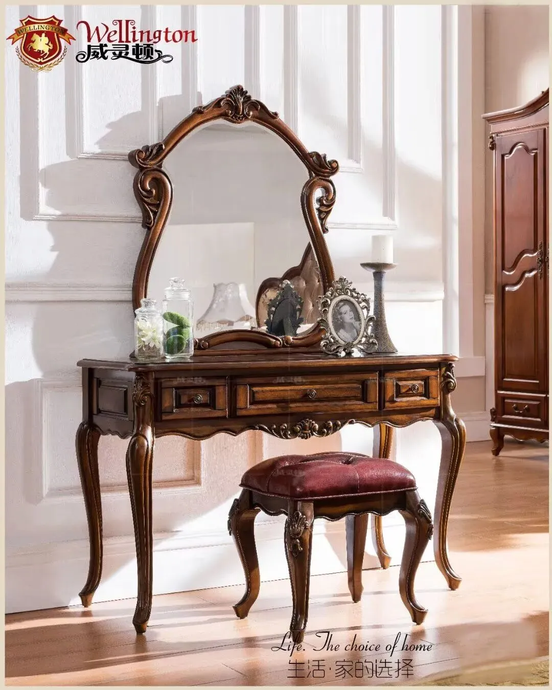 为迎合中国市场消费者需求---“威灵顿”经过企业多年家具技艺的革新,时空的跨越、洗礼,凭着优雅的外形,完善的配套家居,精细的设计;享誉国内、外家具市场,赢得了众多顾客的青睐。