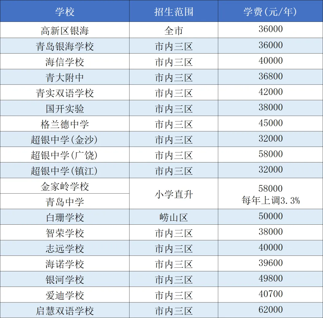 今天,我们整理了青岛部分民办小学、初中、高中学费一览,为您的选择提供参考。