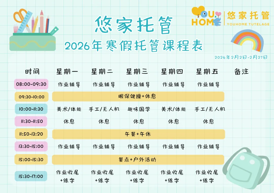 悠家2026寒假托管班开始报名啦!
