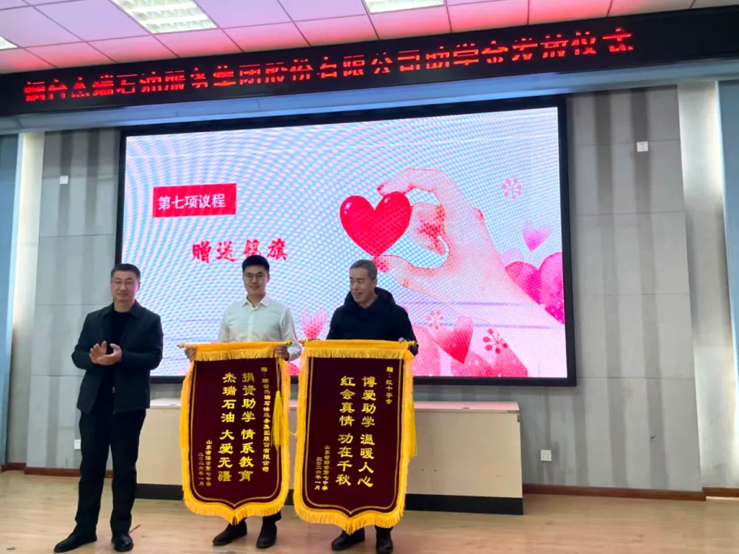 红十字会相关领导对杰瑞股份的义举表示赞许,勉励学生以优异成绩回馈社会关怀,并呼吁多方社会力量加入公益行列,凝聚帮扶助学的强大合力。校方代表向杰瑞股份、市红十字会赠送锦旗,铭记爱心善举。