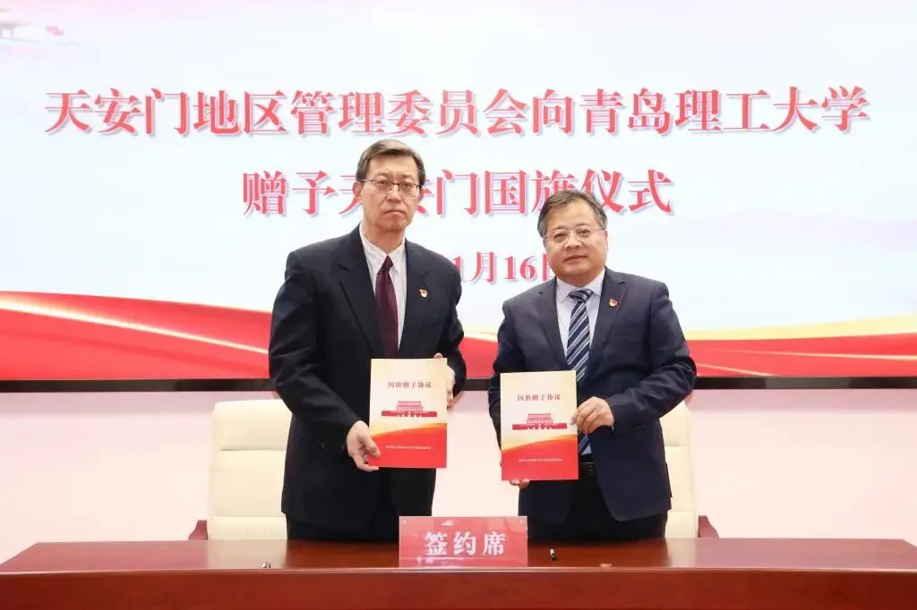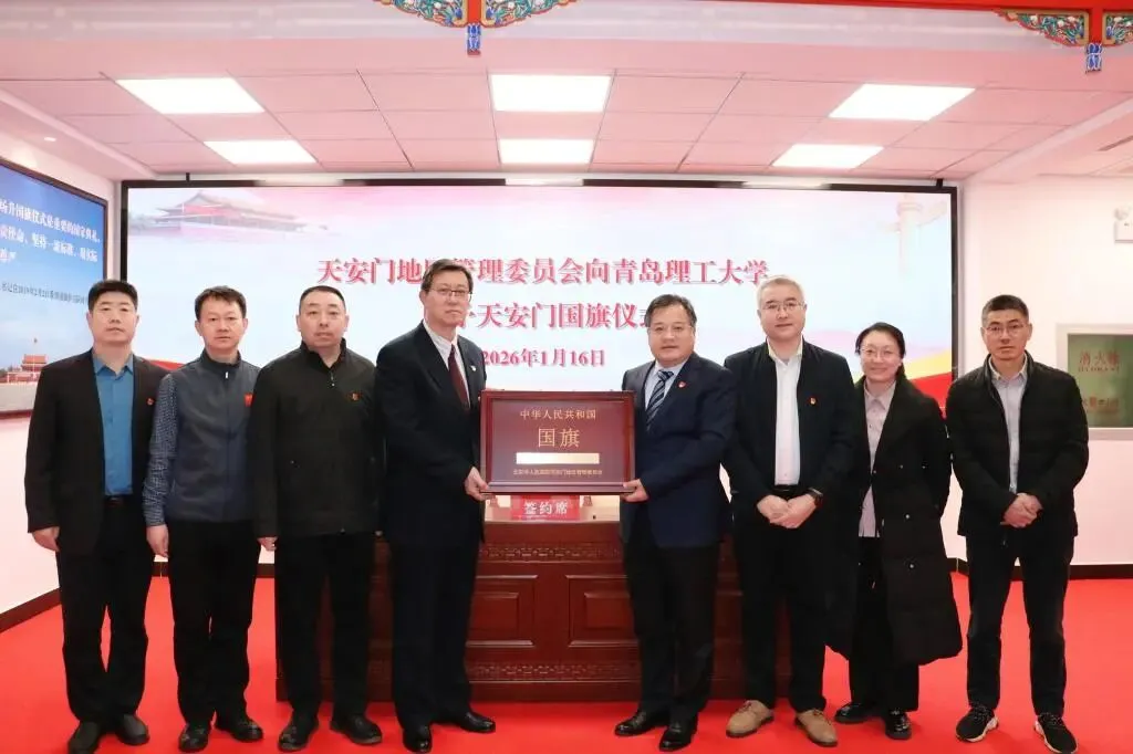 1月16日下午,北京市人民政府天安门地区管理委员会向青岛理工大学赠予天安门国旗仪式在北京举行。一份承载着国家尊严与民族精神的珍贵礼物——编号为2024-0178号国旗正式赠予我校。